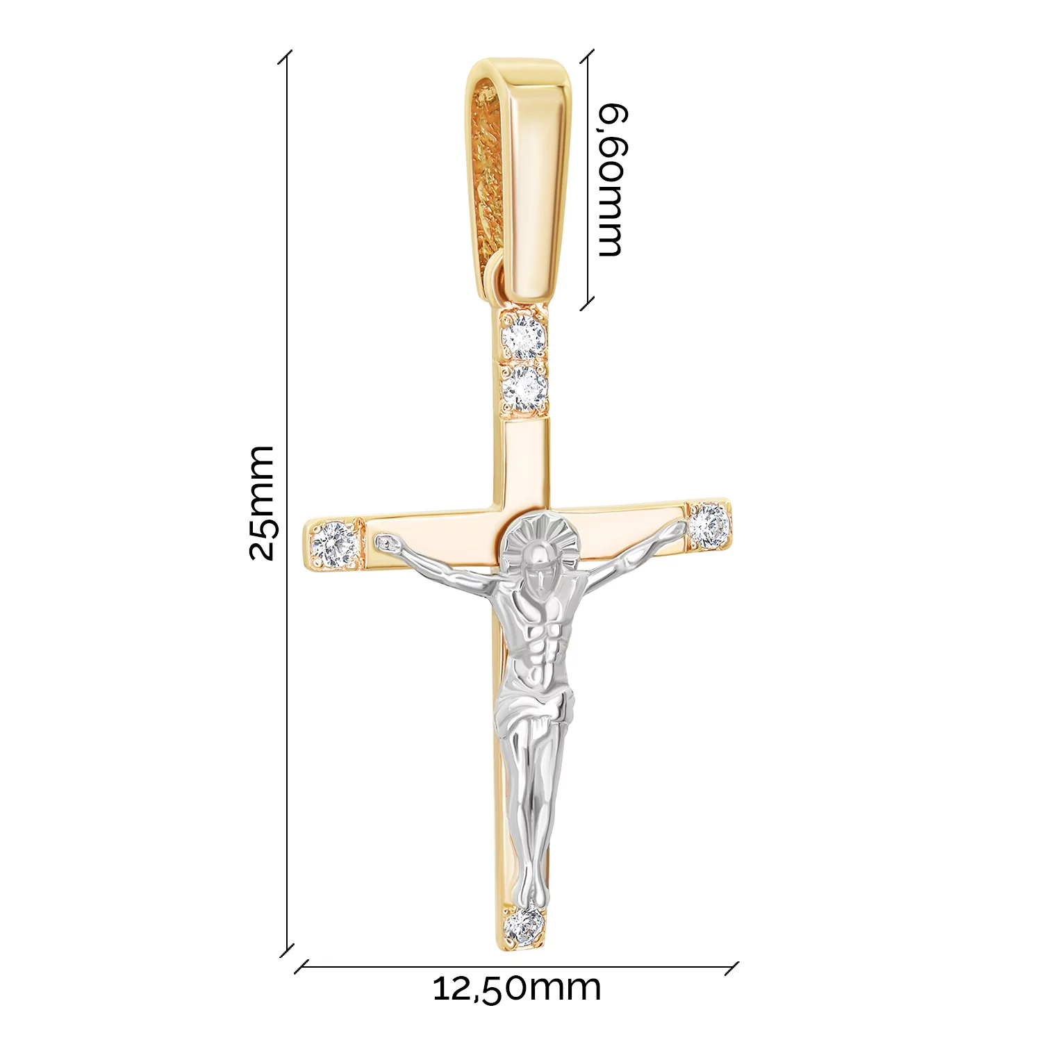 Крестик в красном золоте и вставкой из белого с фианитами - 1565462
