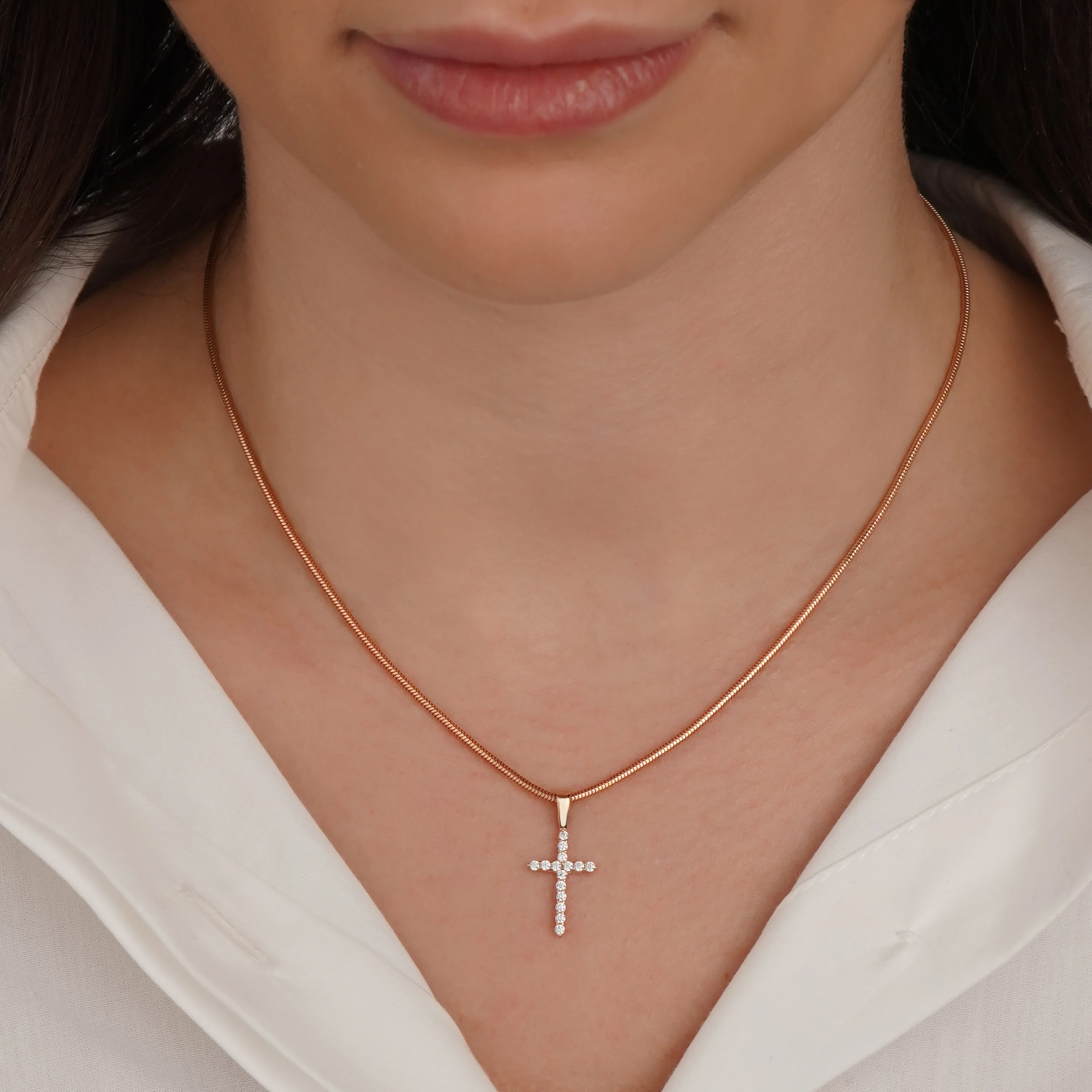 Крестик в красном золоте с дорожкой фианитов - 1628905