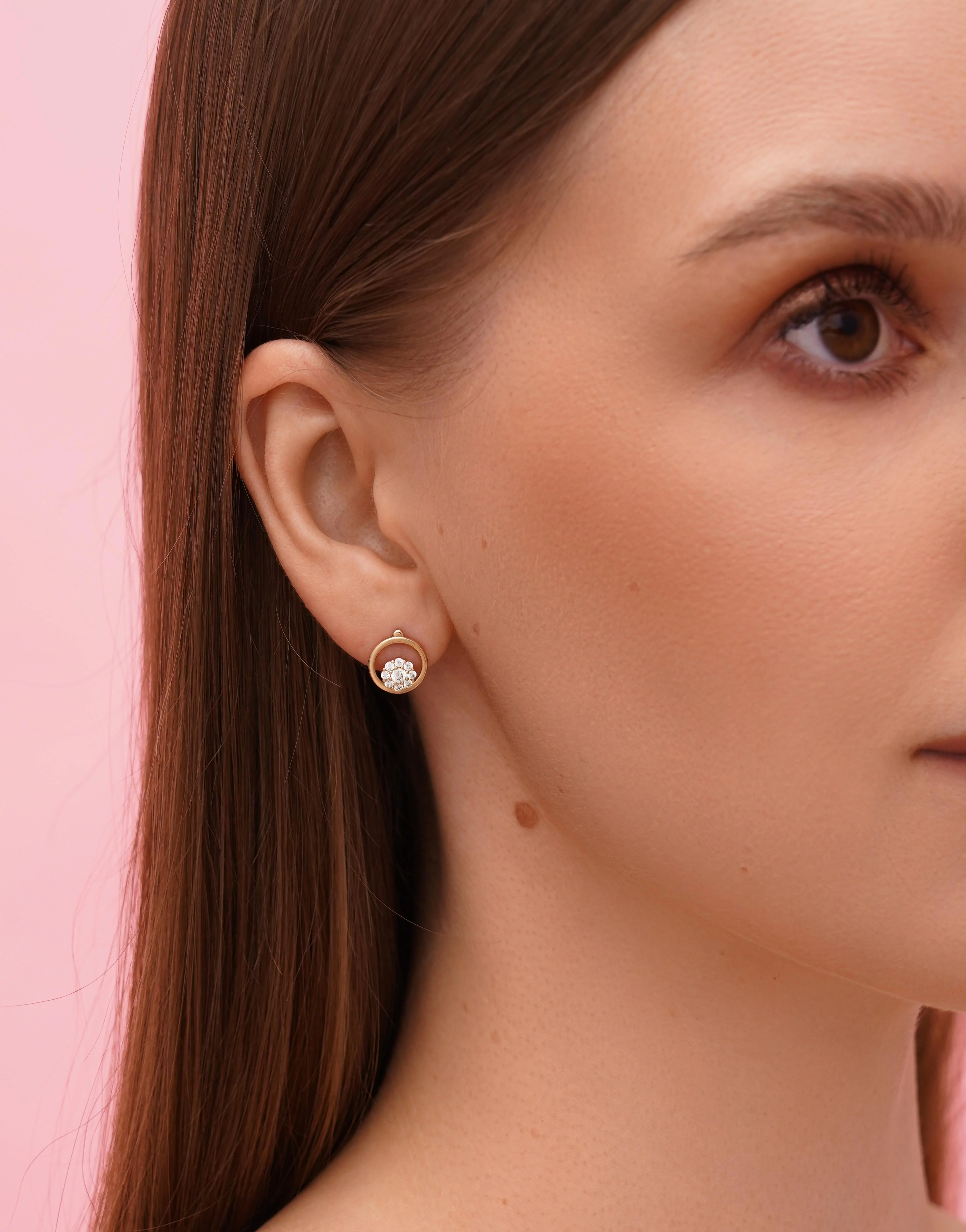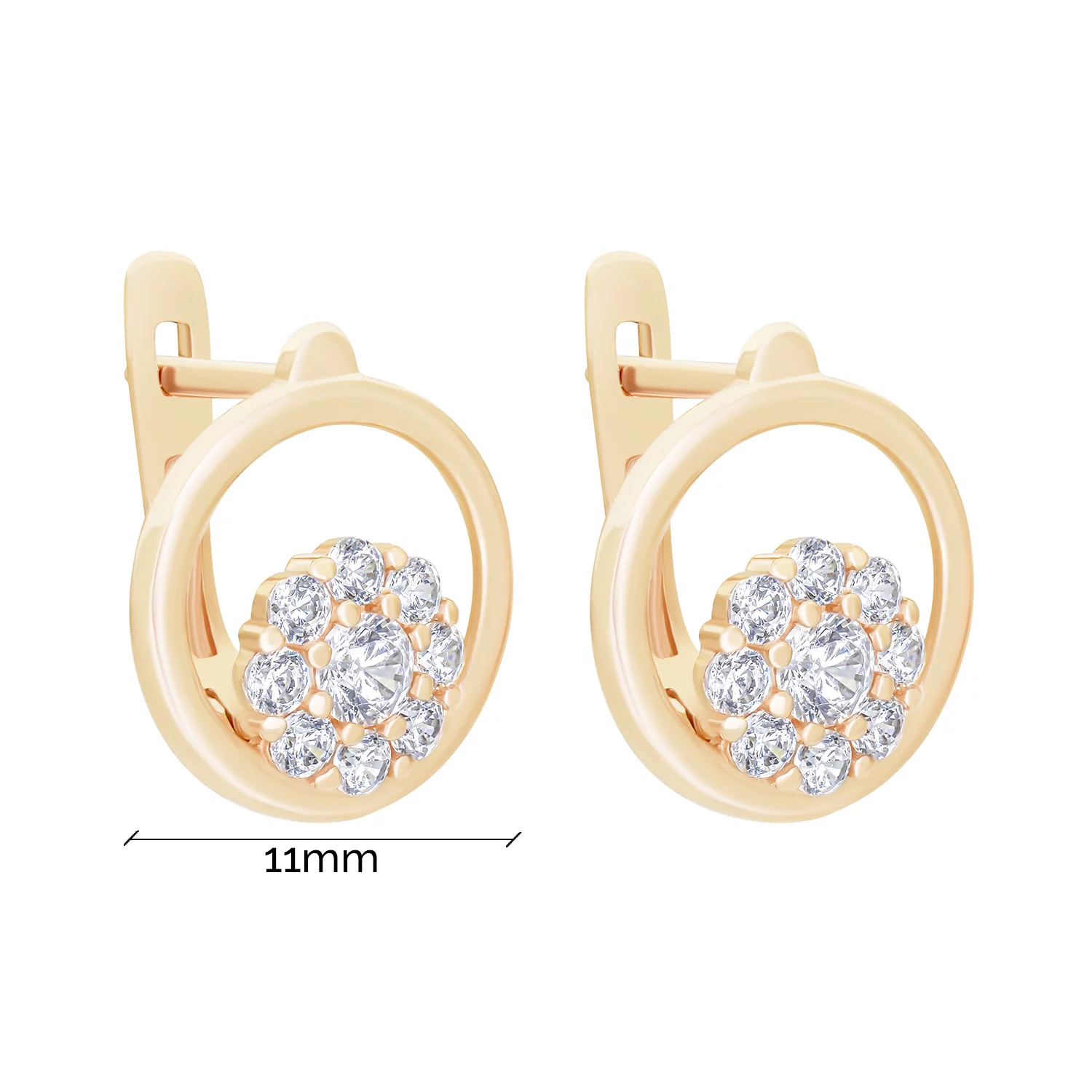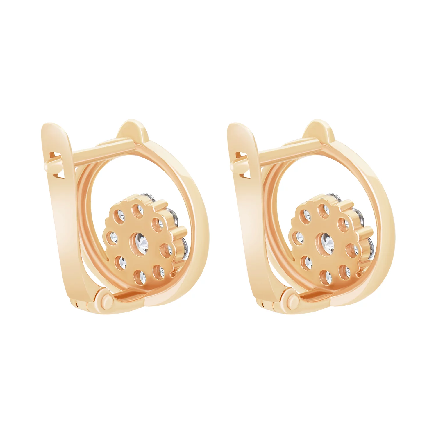 Детские сережки "Цветочек" из красного золота с фианитом и эмалью - 1919314