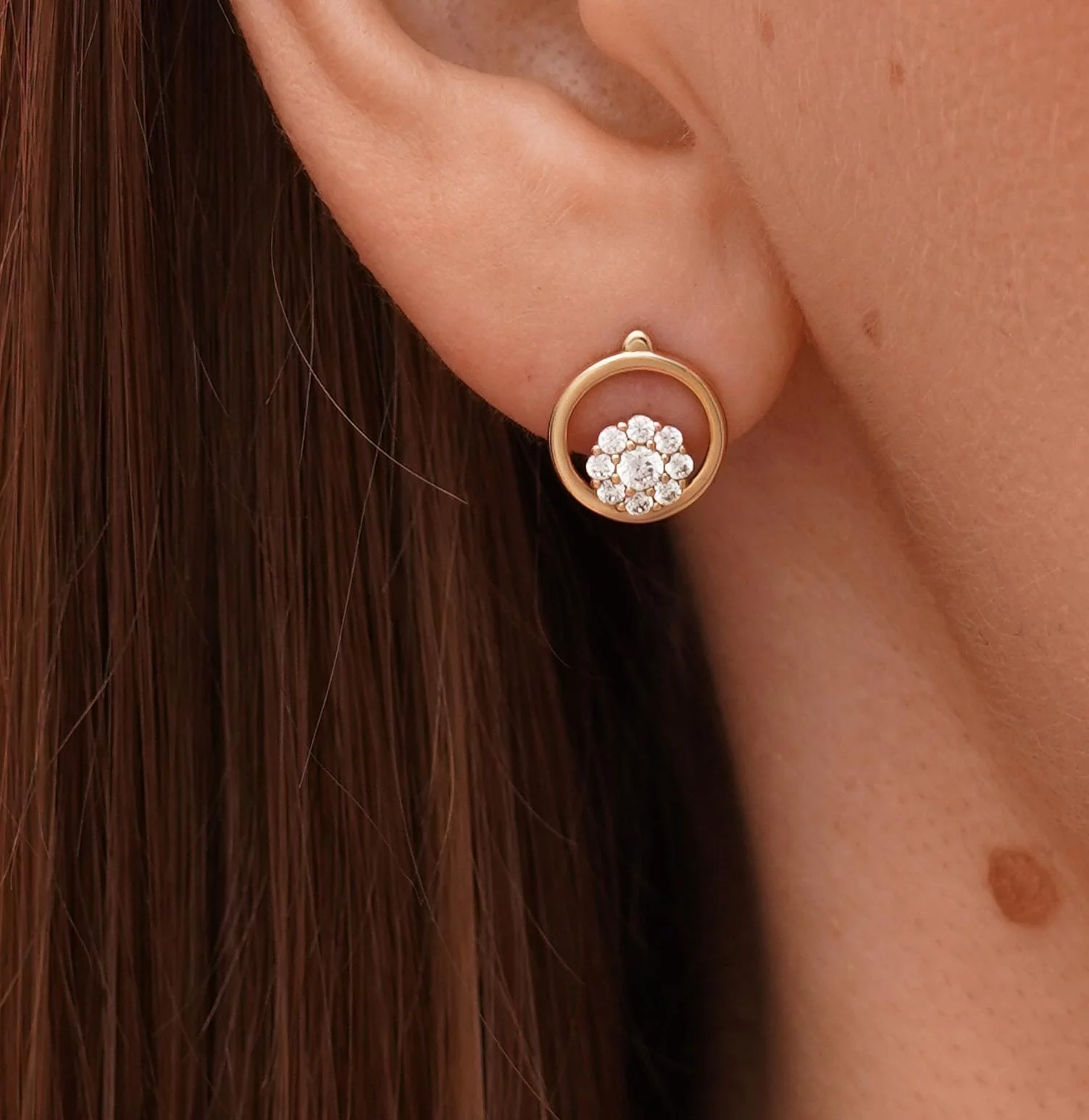 Стильные сережки-гвоздики "Флора" из красного золота с жемчугом, эмалью и фианитами - 1927148
