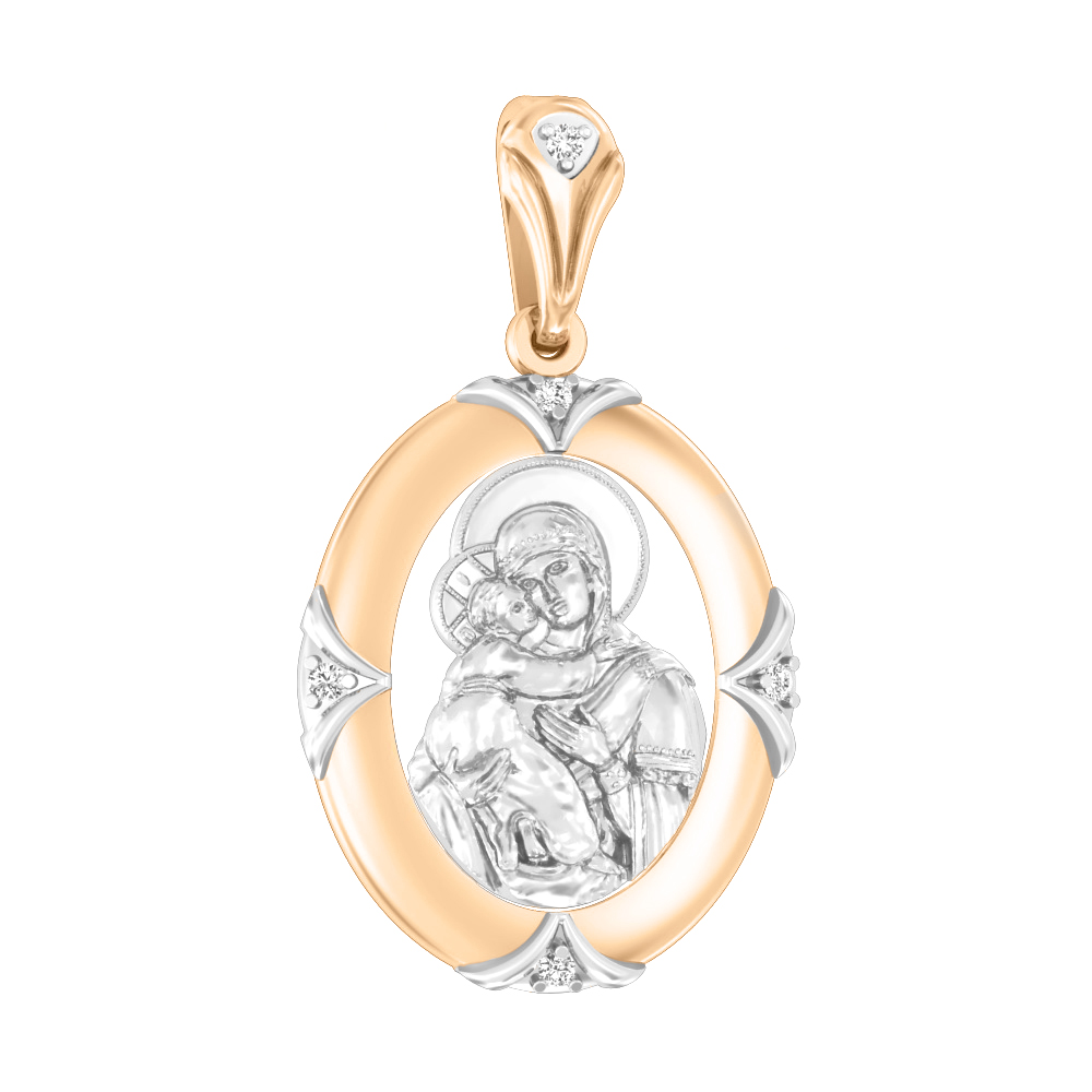 Ладанка из комбинированного золота "Божья Матерь Владимирская" с фианитами - 1523782
