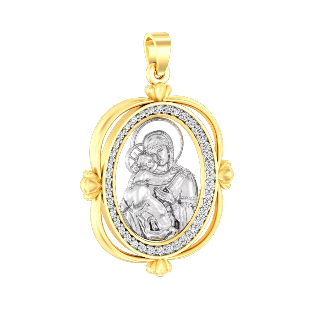 Ладанка из лимонного золота "Божья Матерь Владимирская" с фианитами - 1534851