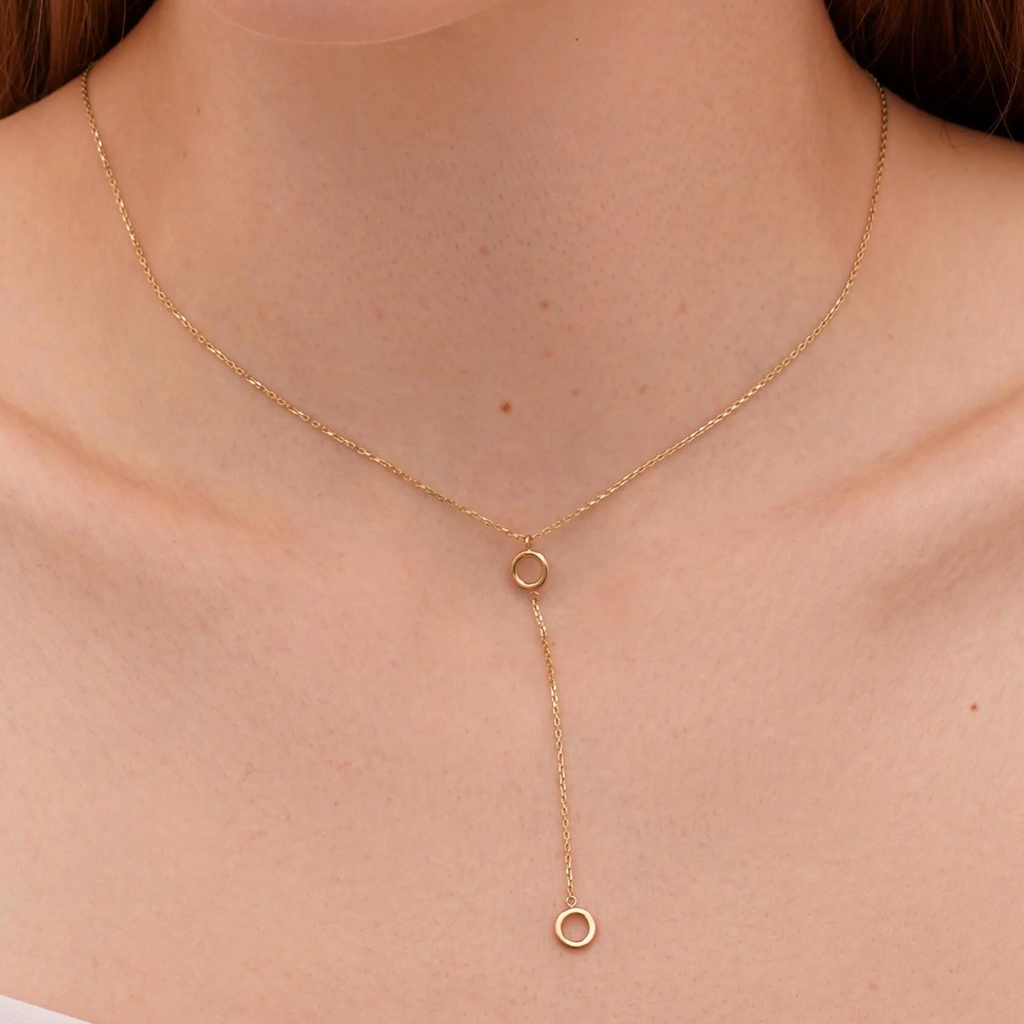 Колье-галстук "Шары" в минималистичном стиле из комбинированного золота с якорным плетением - 1941318