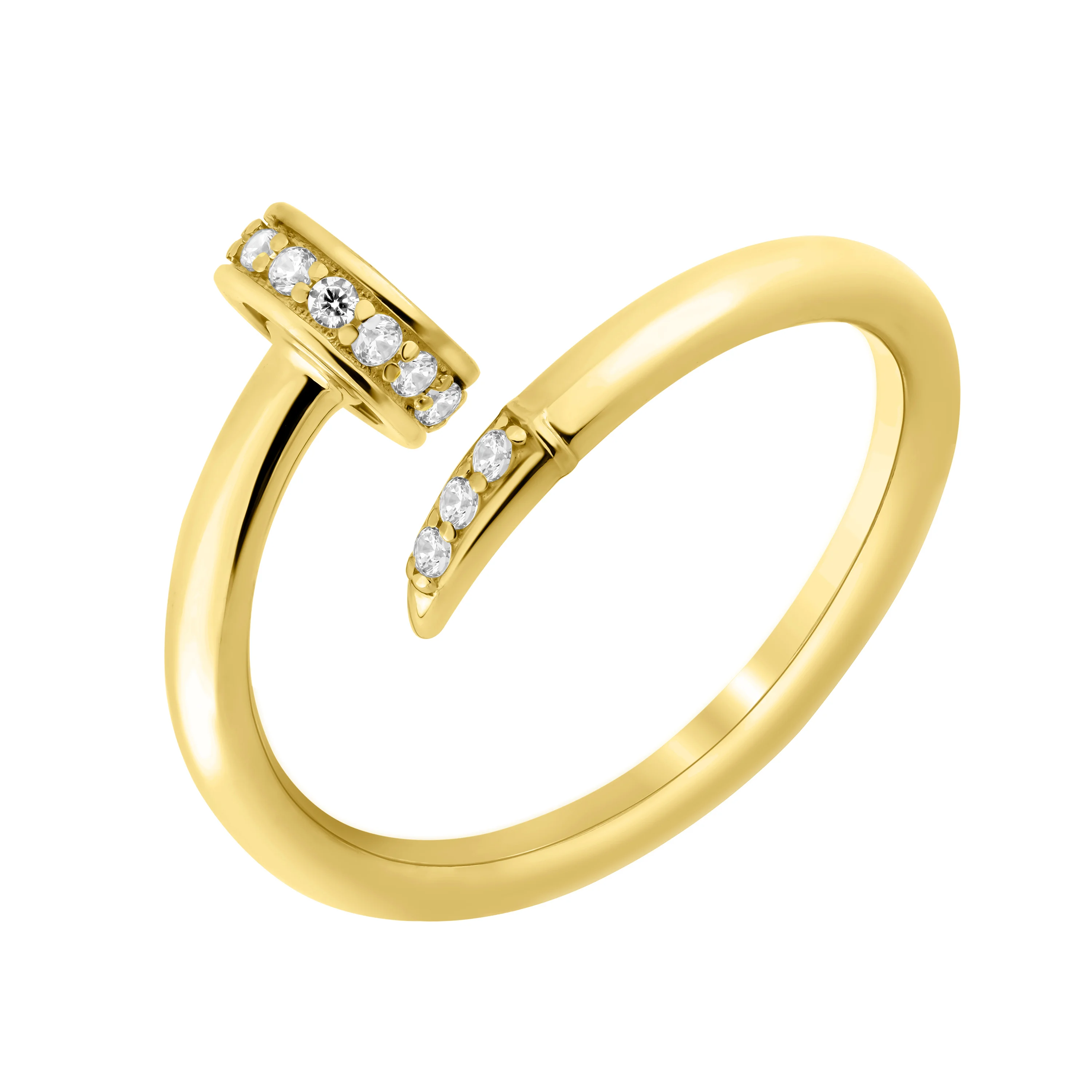 Незамкнутое кольцо "Гвоздь" из желтого золота с фианитами - 2187485