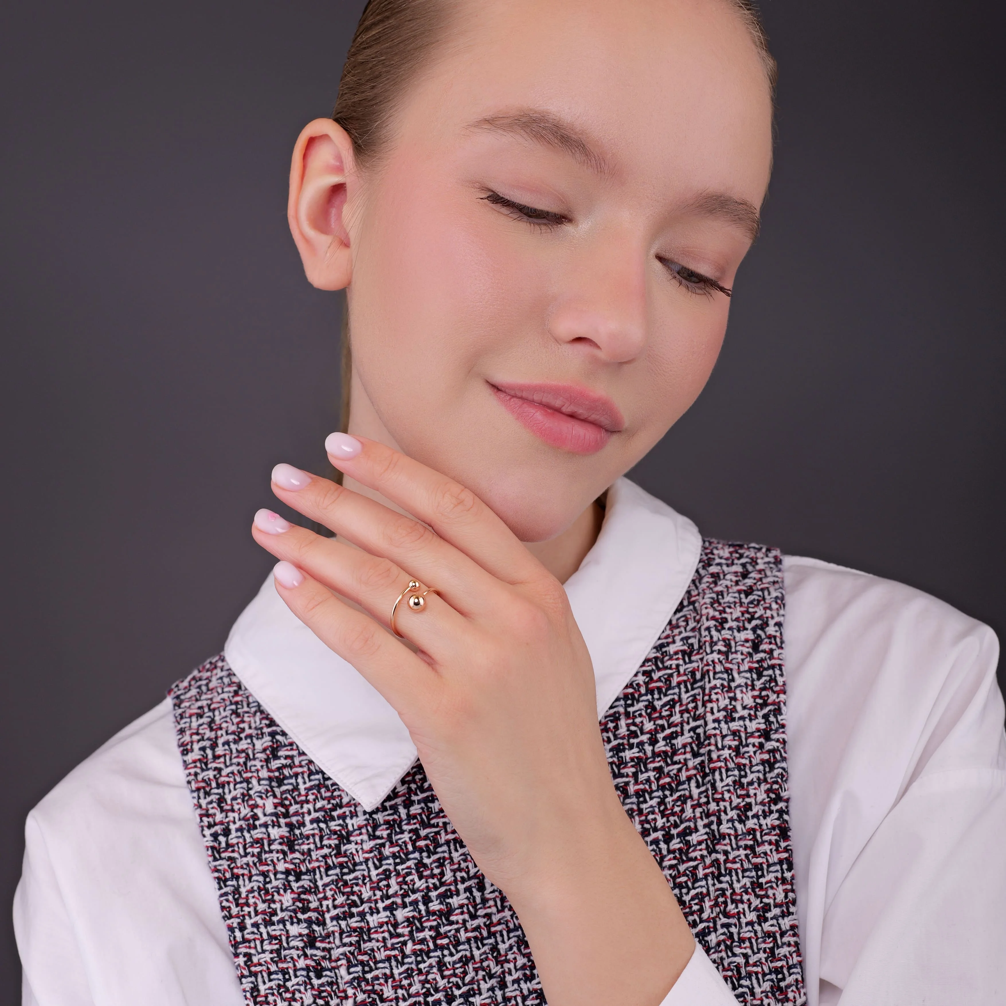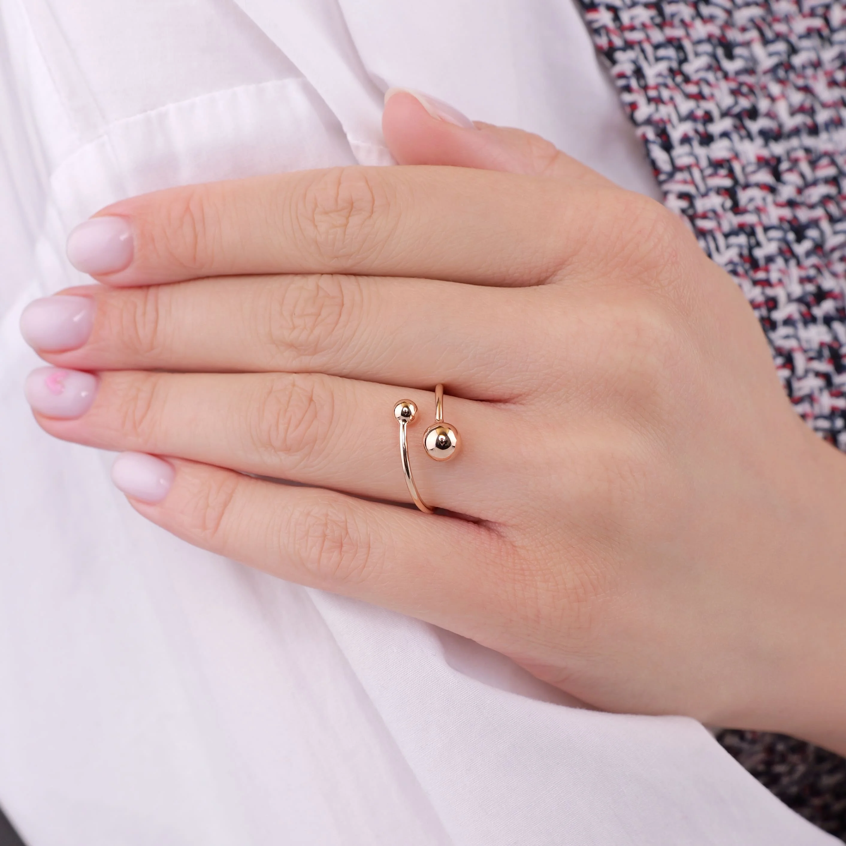 Незамкнутое кольцо "Шарики" в красном золоте - 1976729