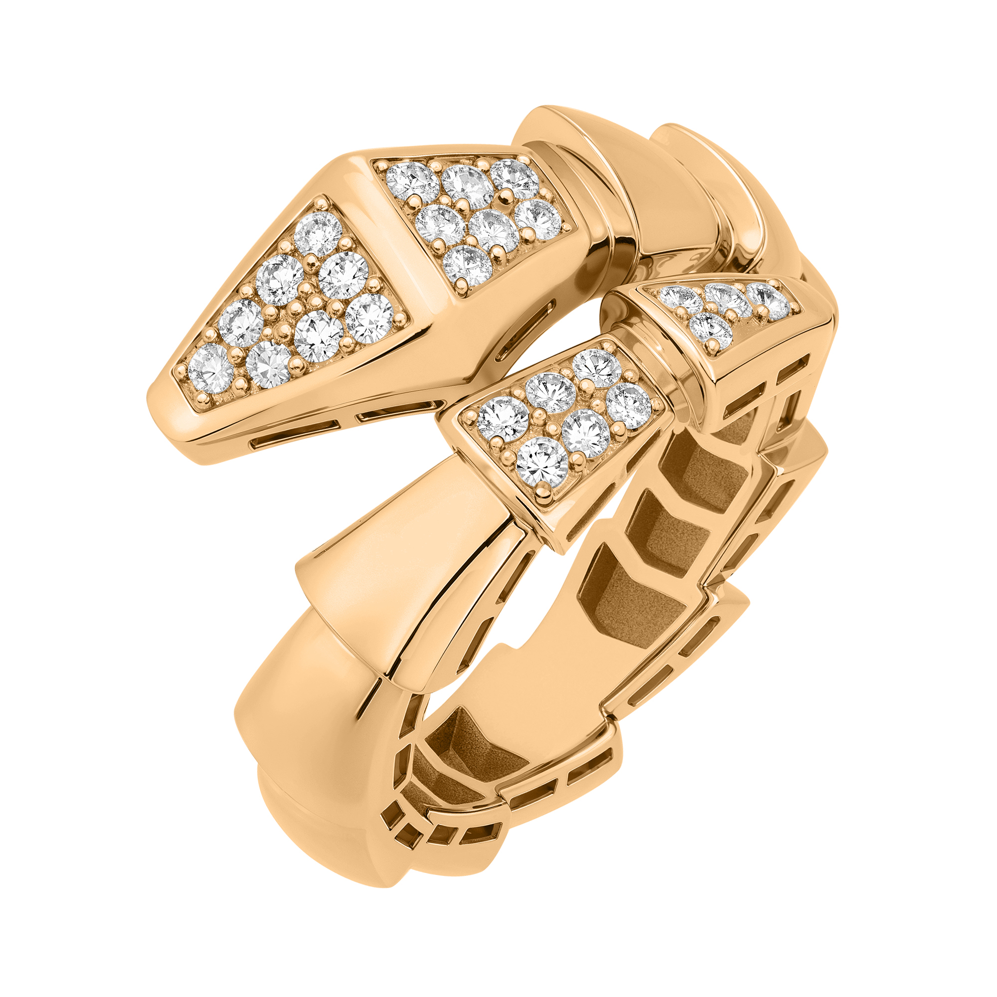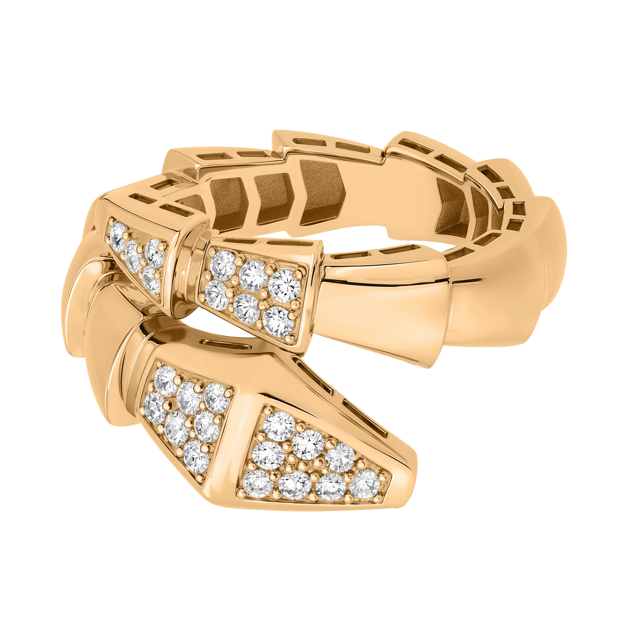 Незамкнутое кольцо "Змея" из красного золота с фианитами - 2149826