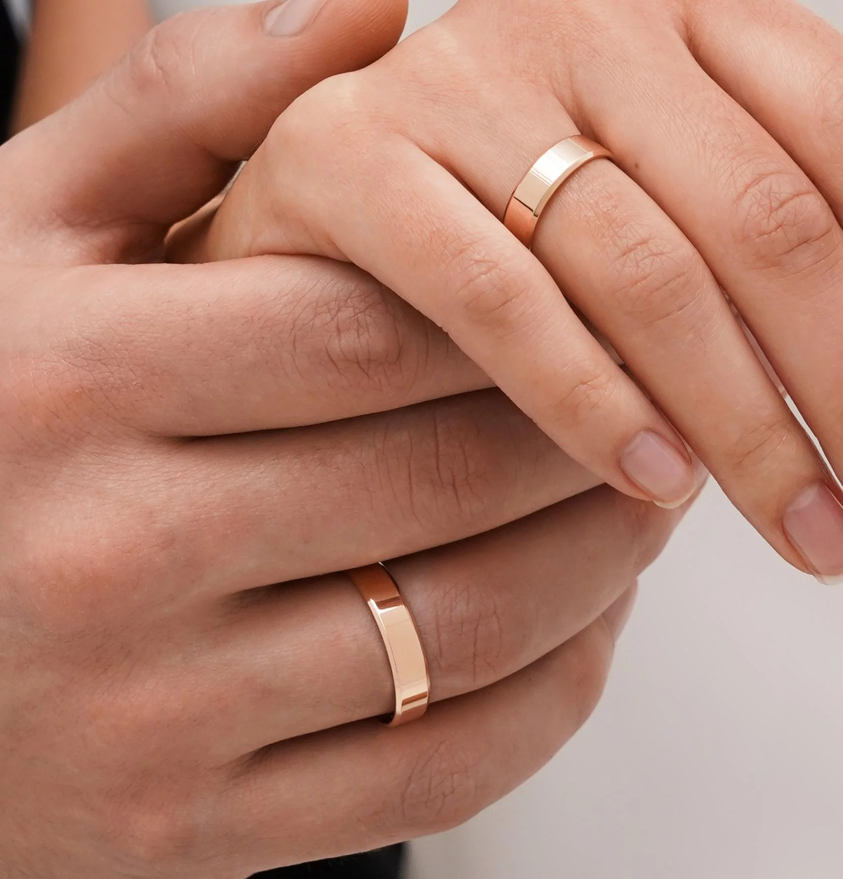 Обручальное кольцо американка с алмазной гранью из красного золота - 967729