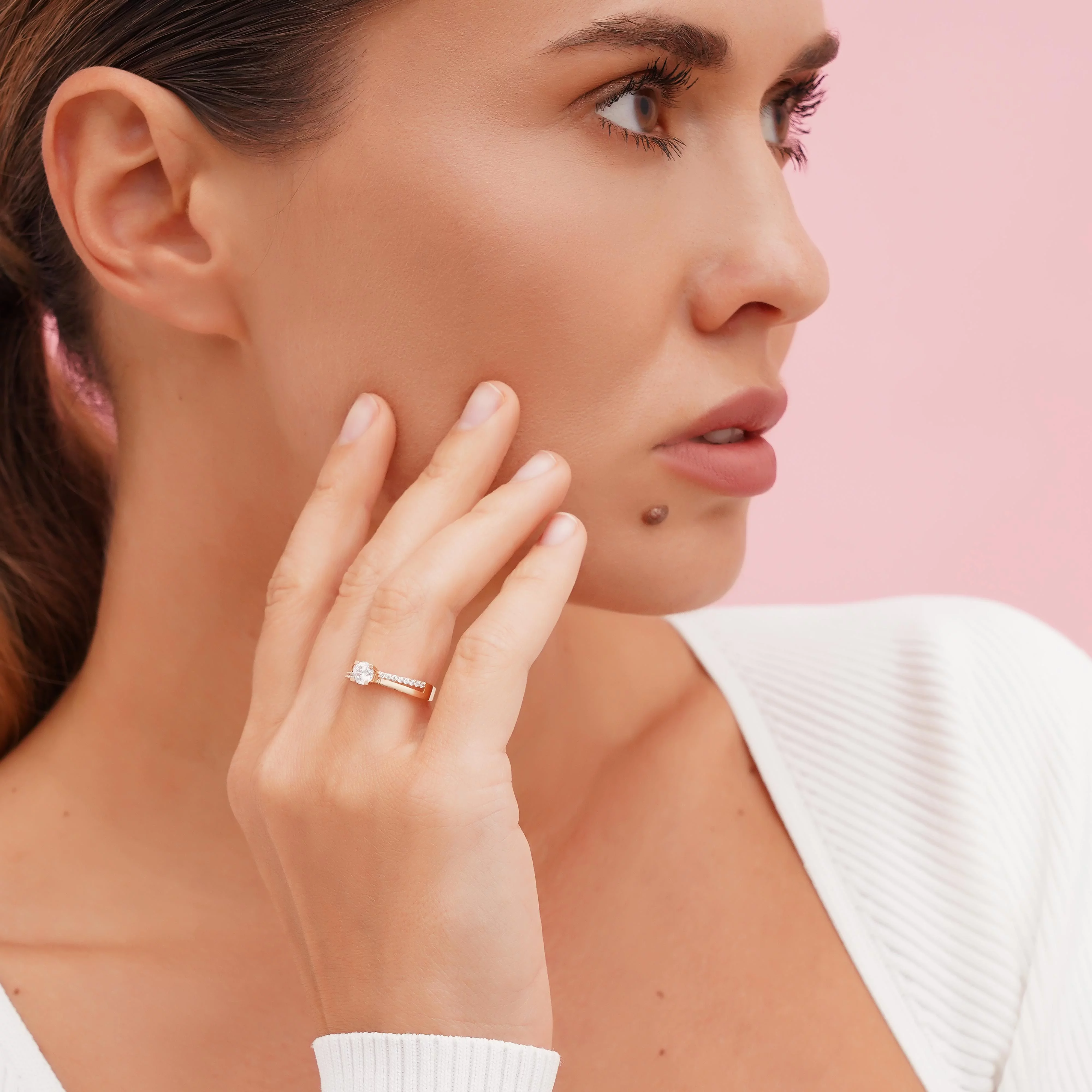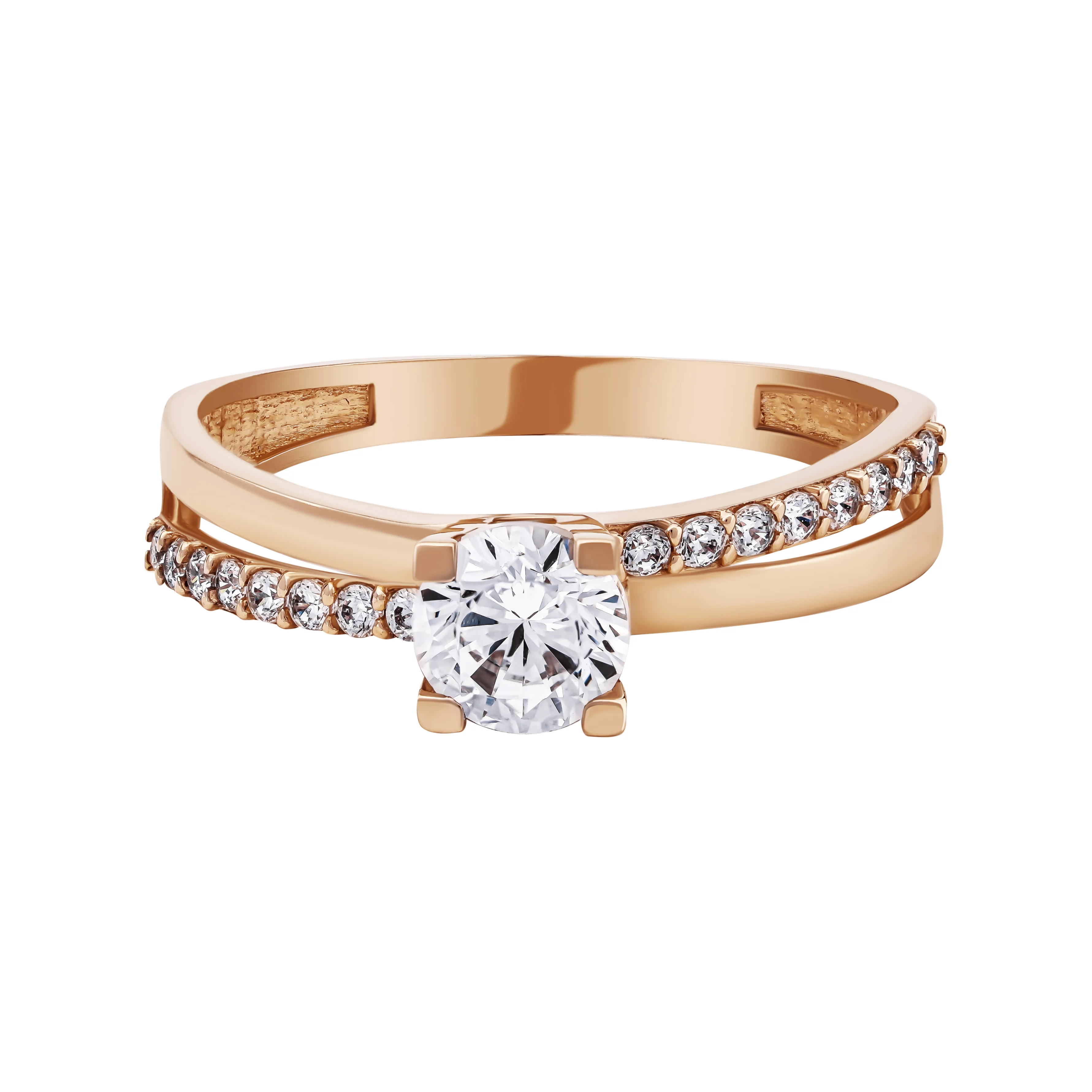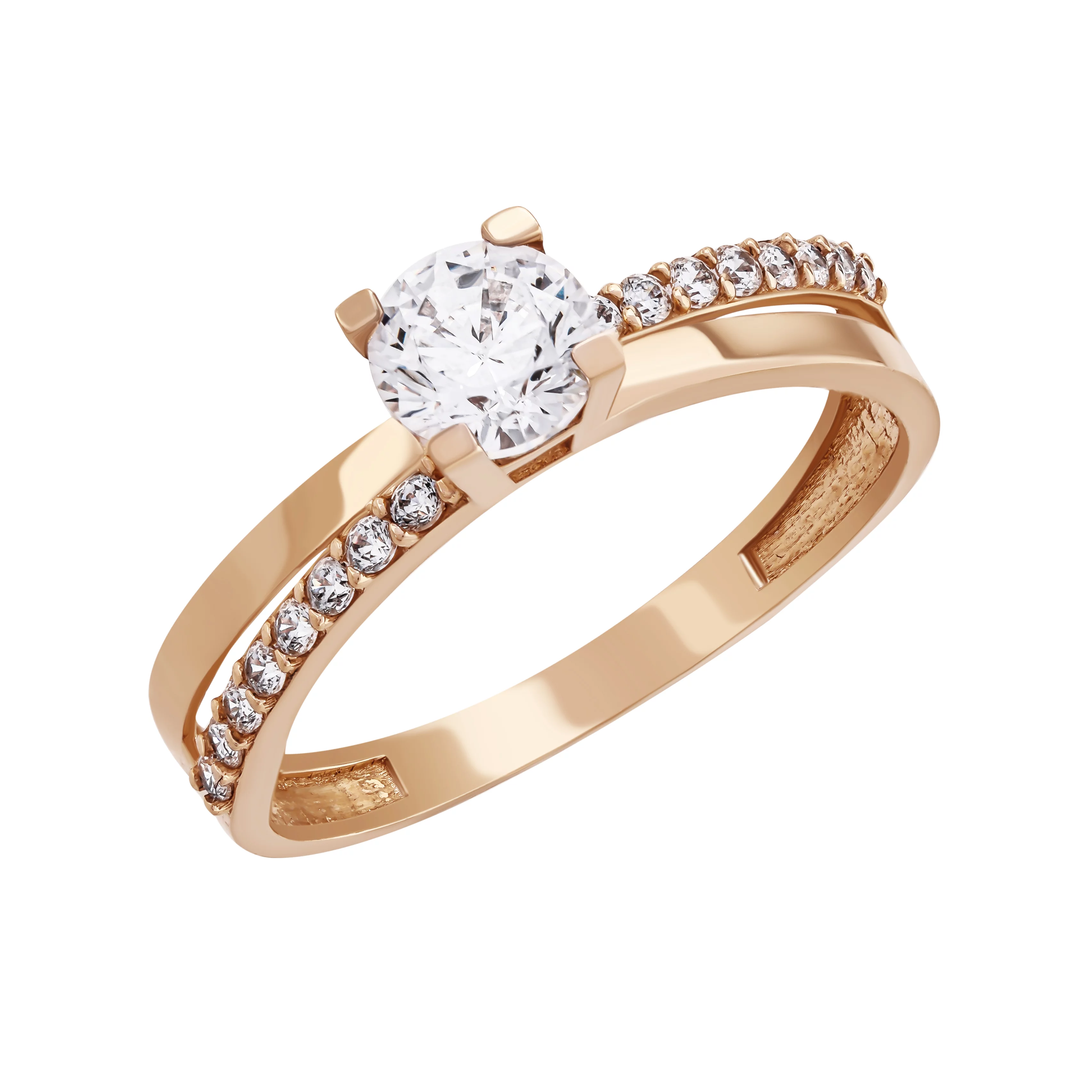 Кольцо из красного золота с фианитами в стиле фэшн — элегантное украшение на женскую руку, которое может стать как частью повседневного образа, так и драгоценностью, предназначенной для особенных событий. Изделие выполнено из ювелирного металла 585 пробы. Двойная шинка соединяется в одну. Красный оттенок золоту придает медь в лигатуре сплава (9,5%). Кольцо инкрустировано фианитами с круглой огранкой: мелкими дорожками ассиметрично усыпана накладка, а крупный камень держит каст. Такое украшение можно дарить как помолвочное, когда мужчина делает предложение возлюбленной.