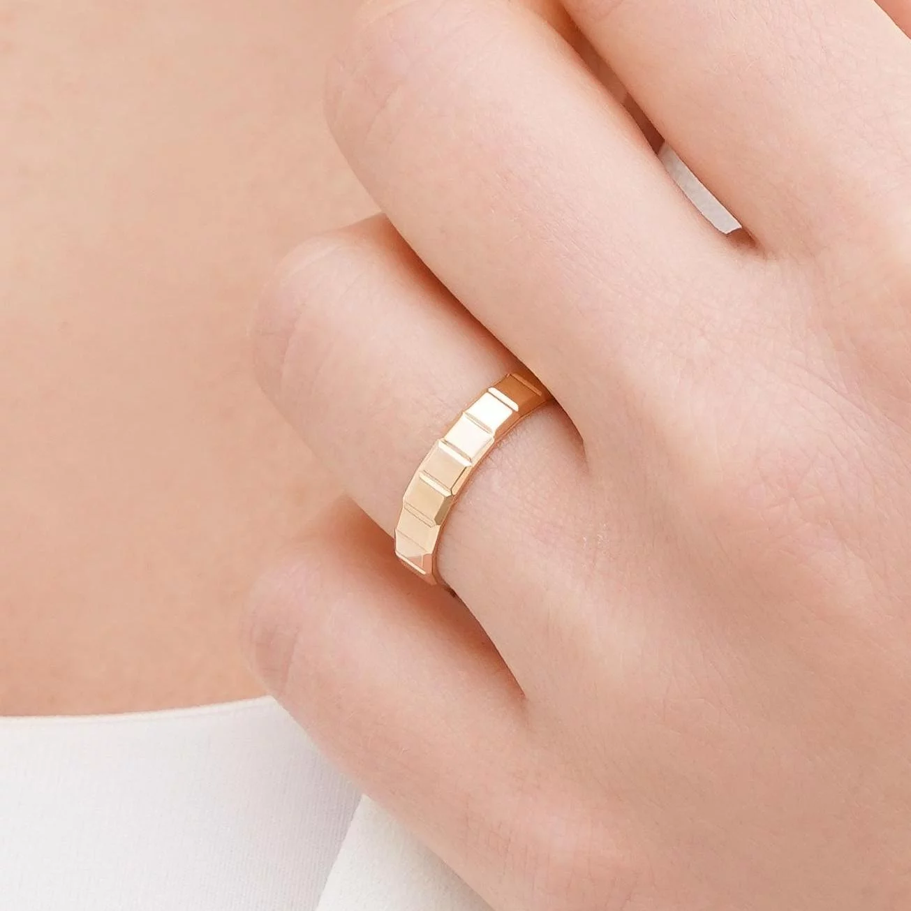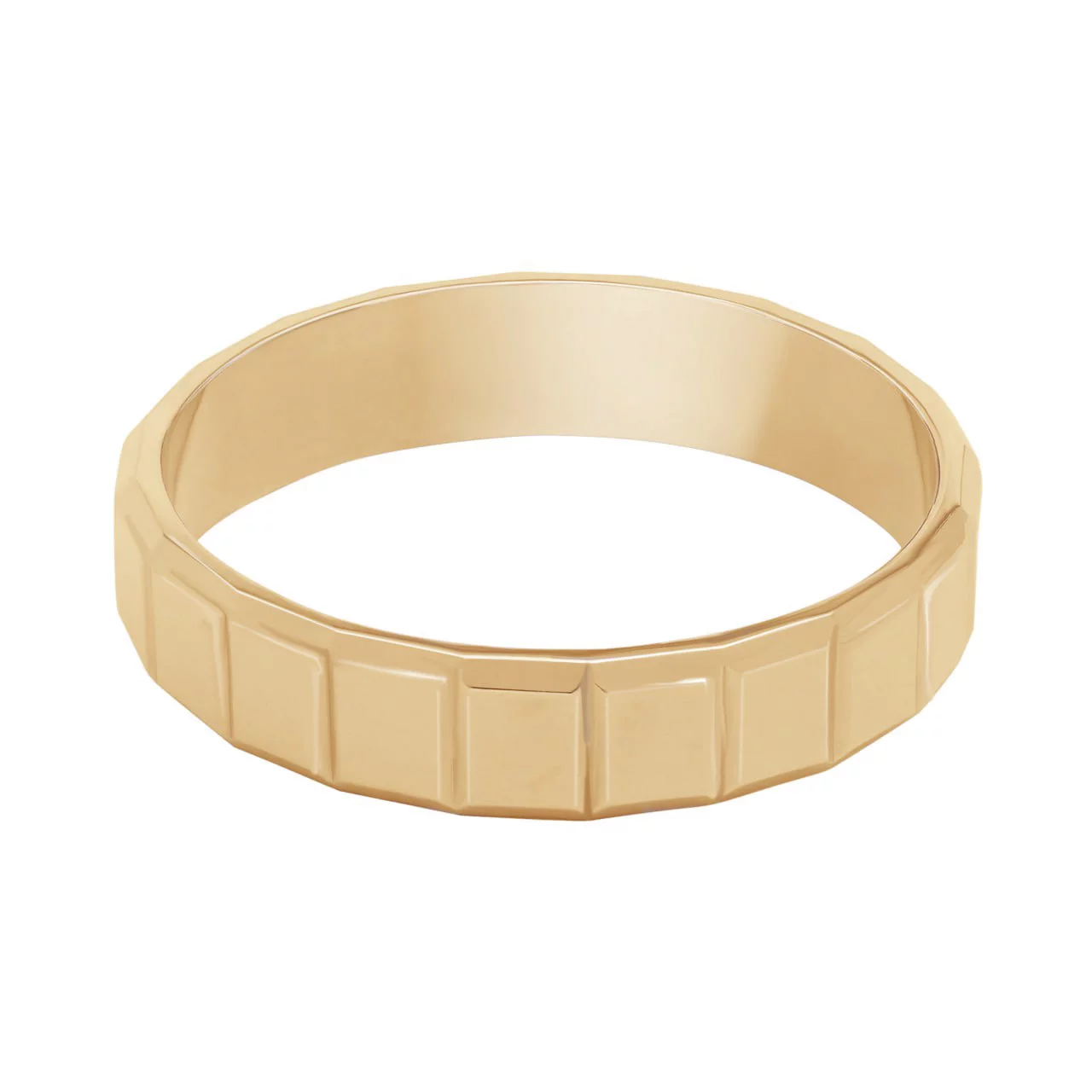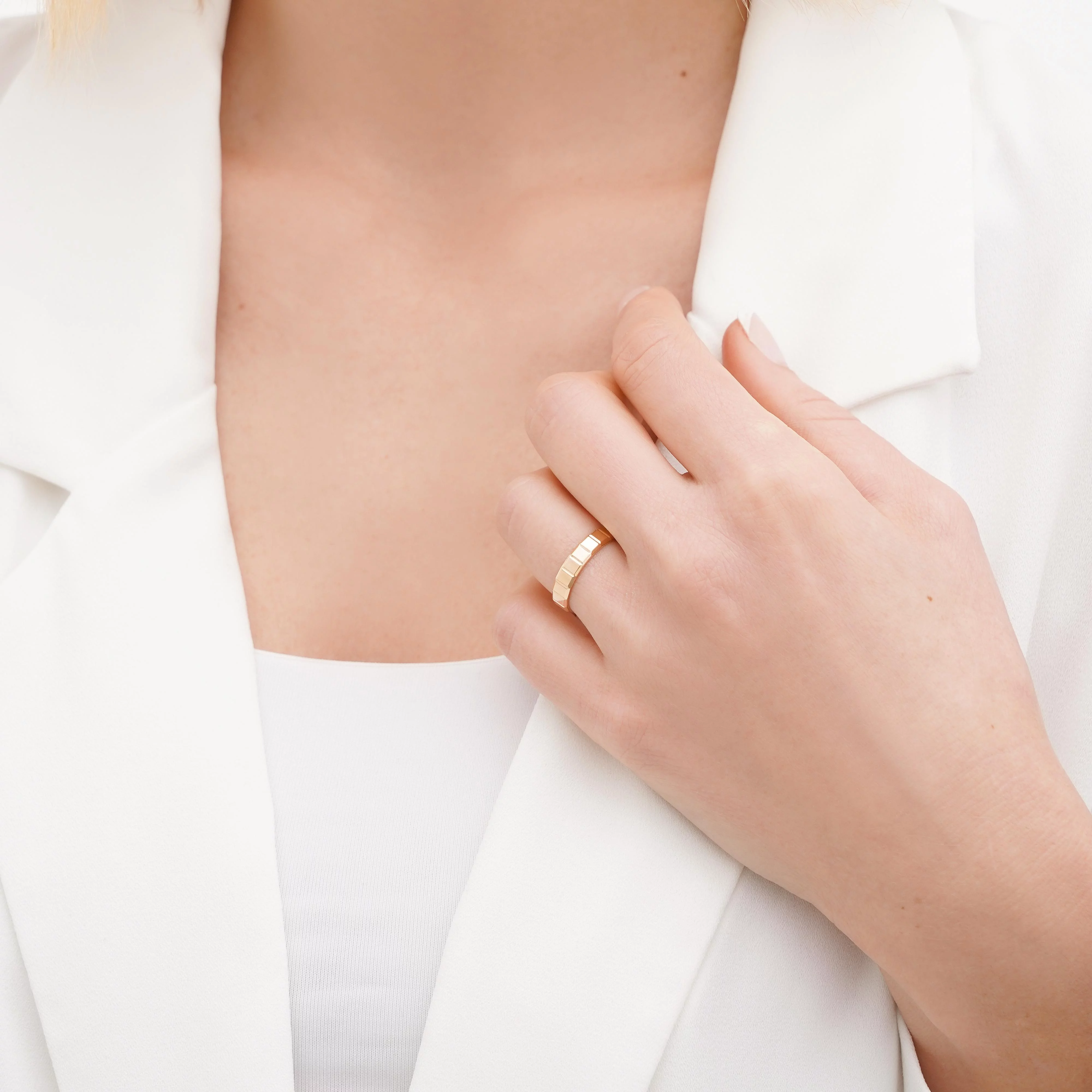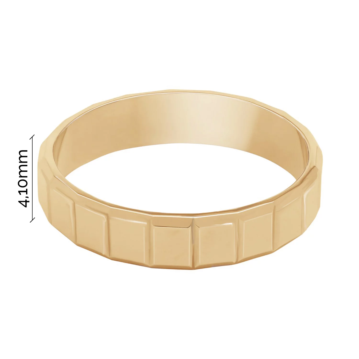 Современное лаконичное обручальное кольцо американского типа. Изделие не миниатюрное, но и не особо массивное.Поверхность обручалки хорошо отполированная, за счет этого она идеально прилегает к пальцу, не доставляет дискомфорта.Отсутствие элементов декора делает украшение универсальным для мужчин и женщин. Уместно для свадеб в любом стиле. Для создания применили сплав золота и металлов, характерный для 585 пробы. Красный, насыщенный оттенок составу придает добавленная медь.