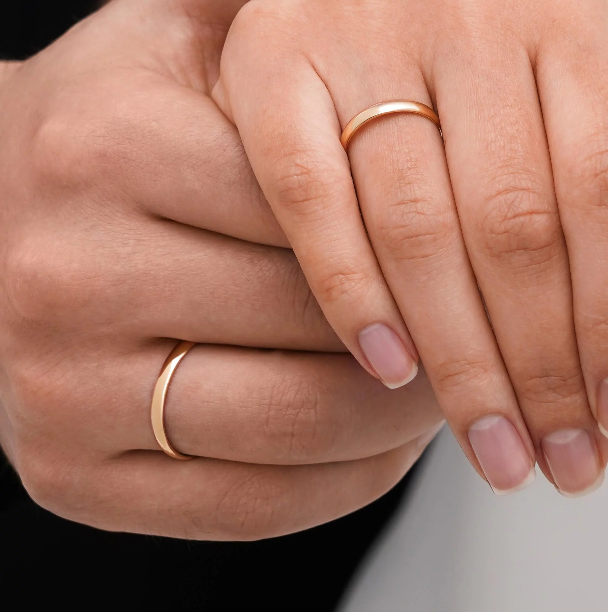 Обручальное кольцо американка с алмазной гранью из красного золота - 967729