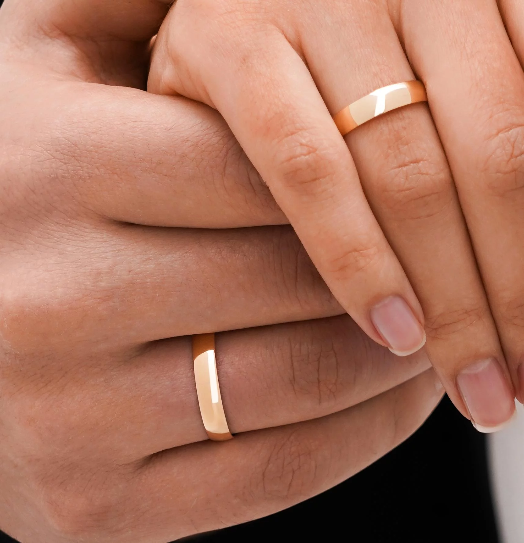 Обручальное кольцо американка с алмазной гранью из красного золота - 967729