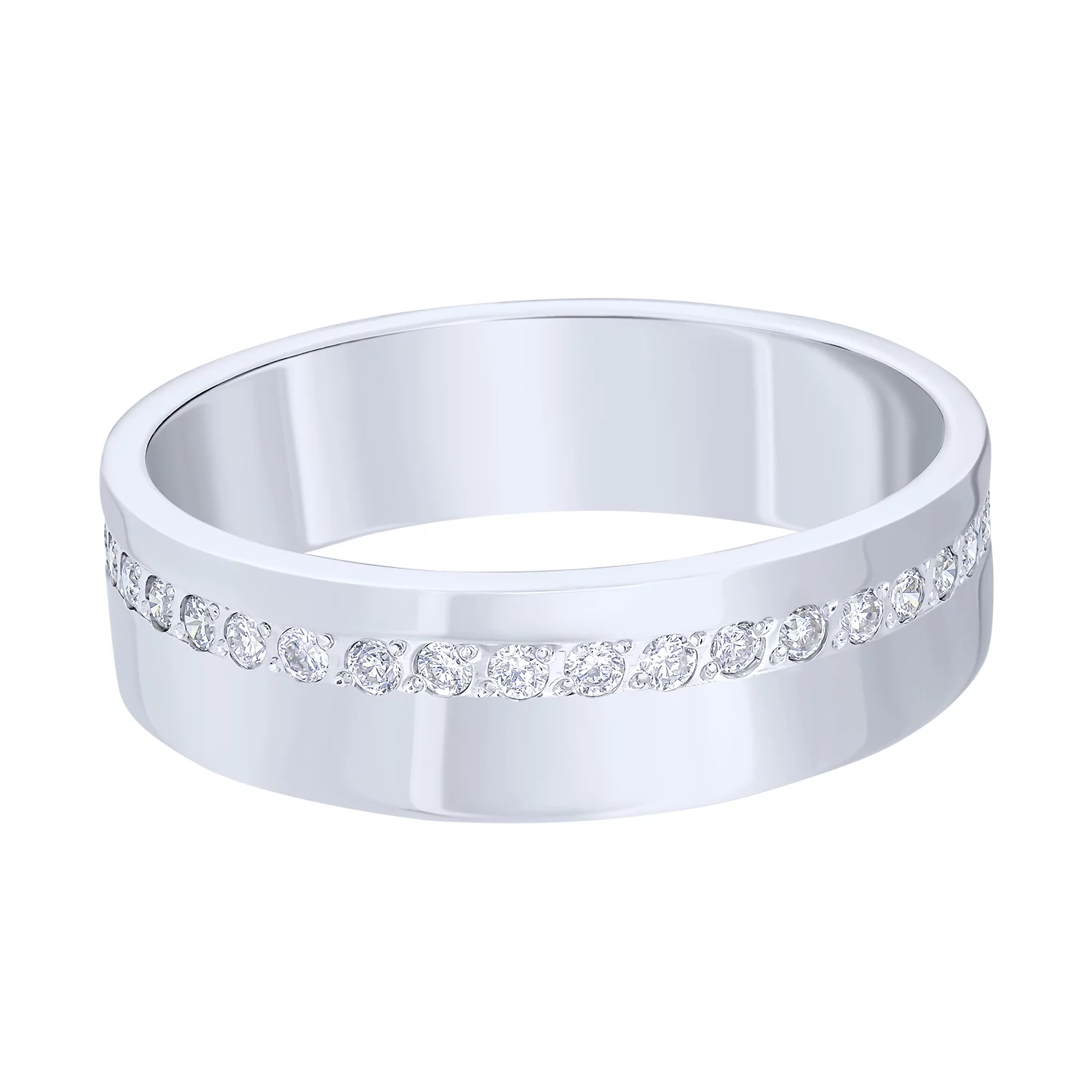 Обручальное кольцо в комбинированном золоте с дорожкой фианитов - 1744586