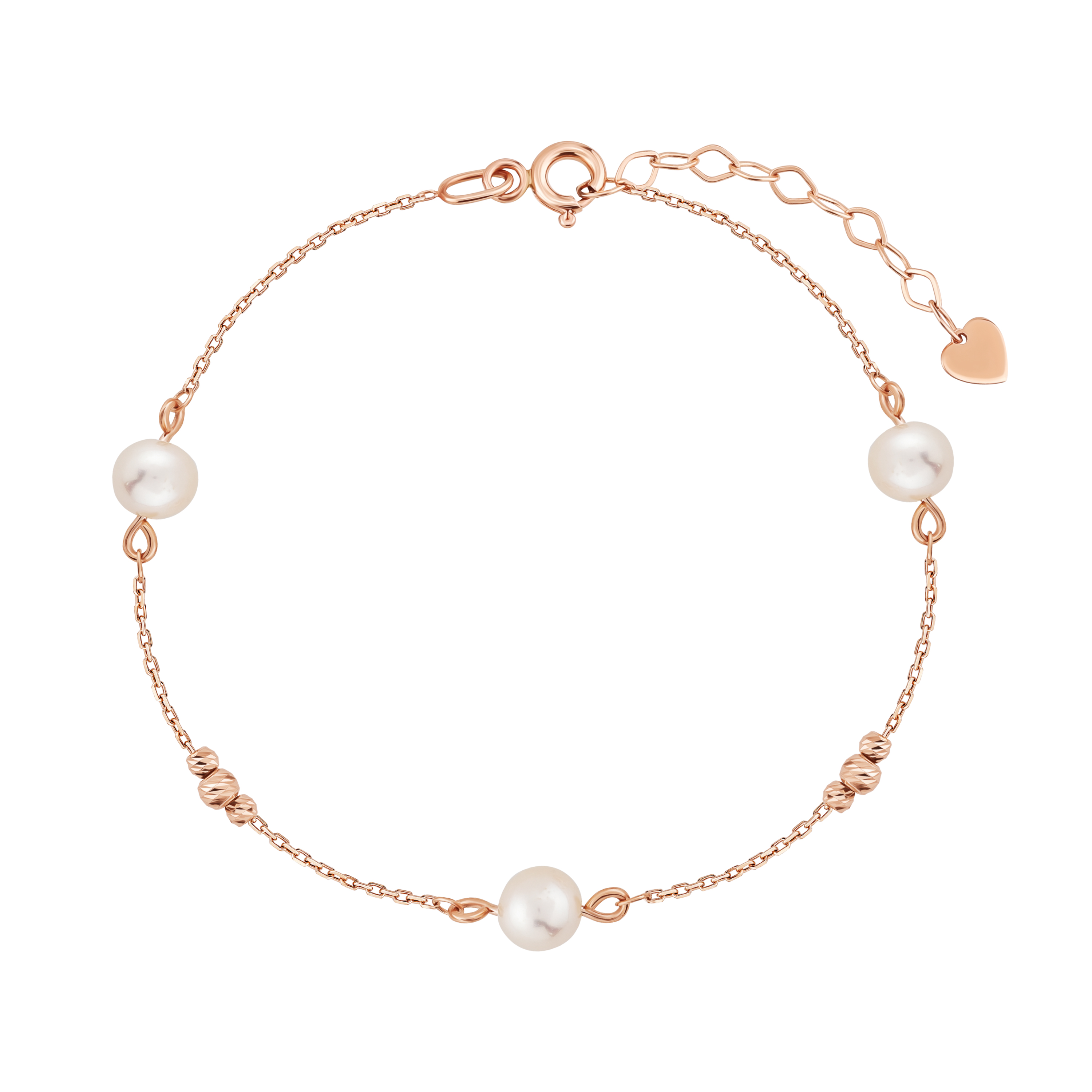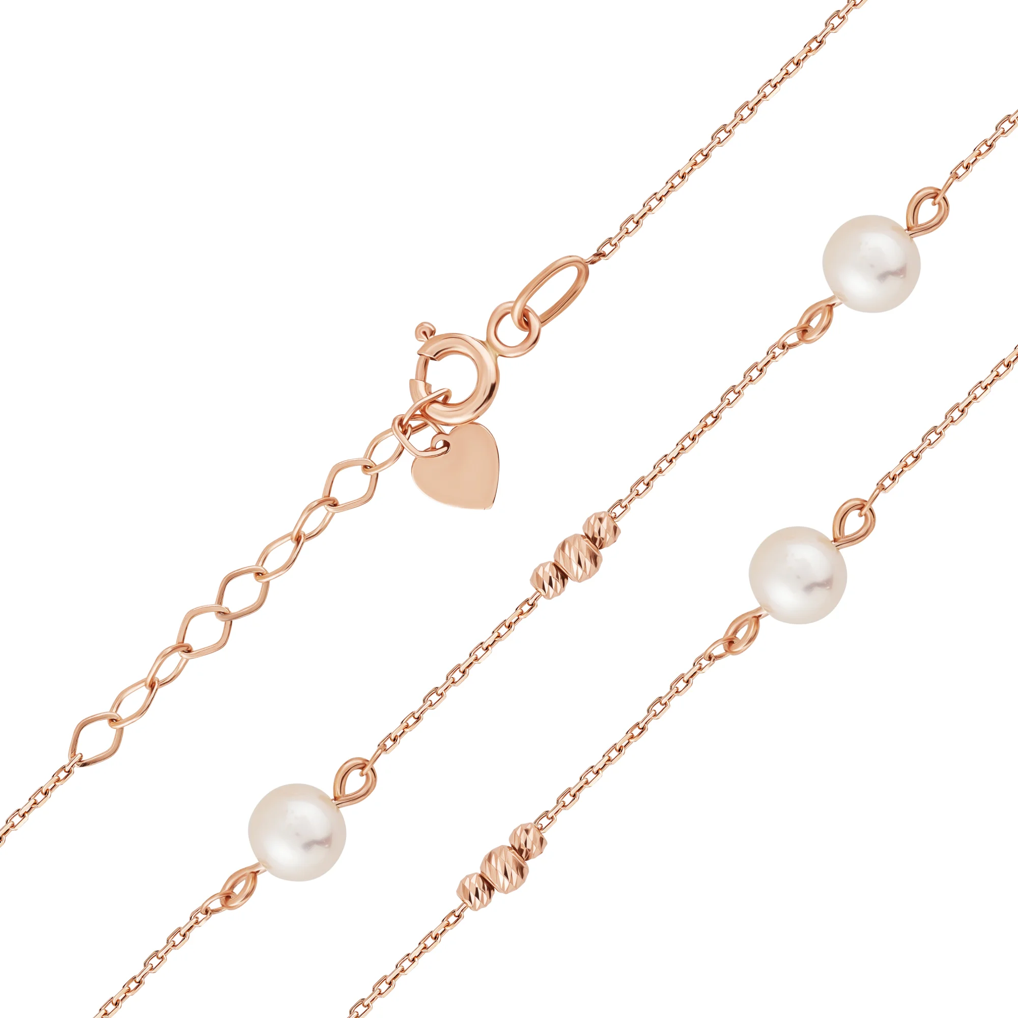 Очаровательный браслет из красного золота с жемчугом якорное плетение - 2102107