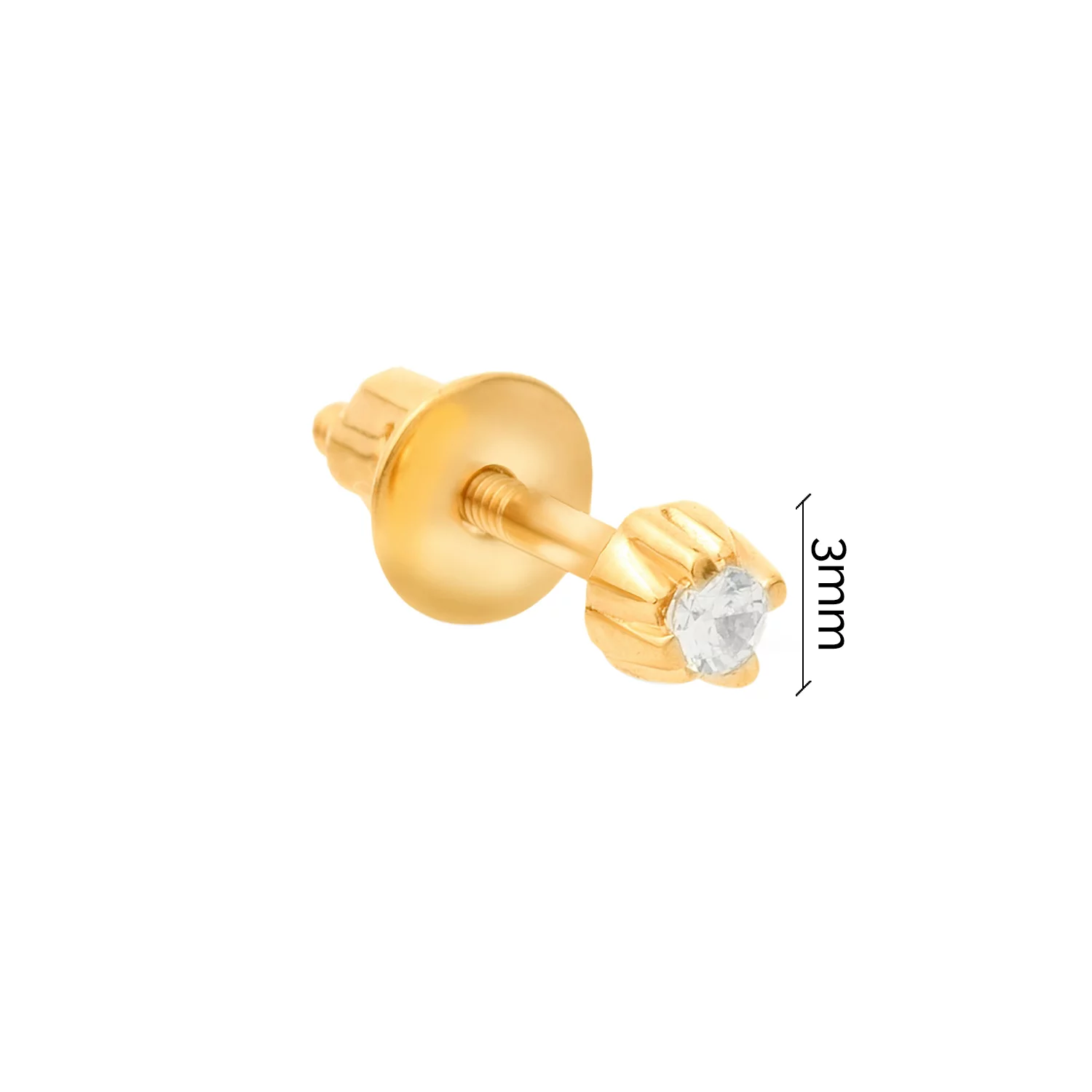 Одна серьга-гвоздик из желтого золота с фианитом - 1504932
