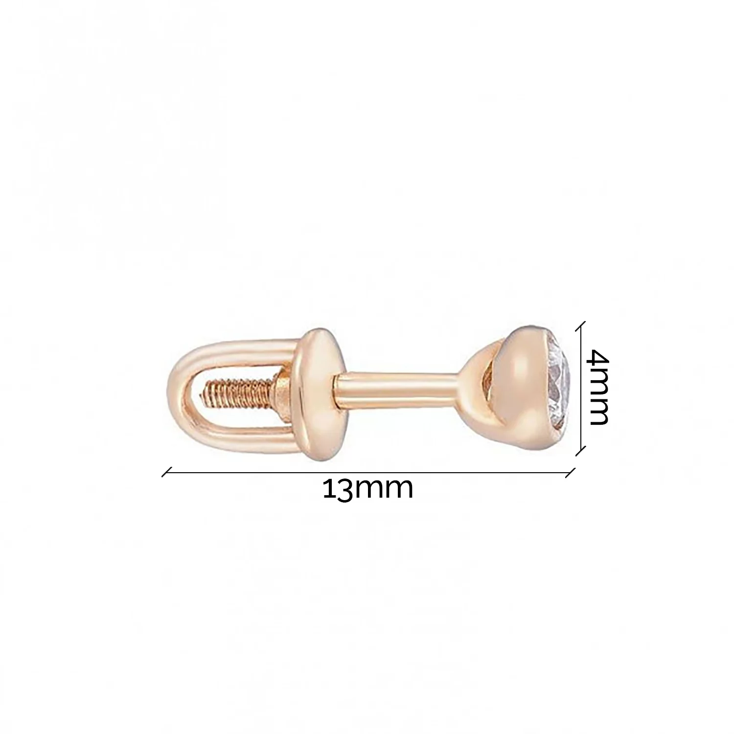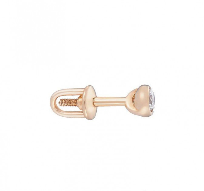 Сережки-гвоздики "Сердце" в романтичном стиле из красного золота и с фианитами - 1859350