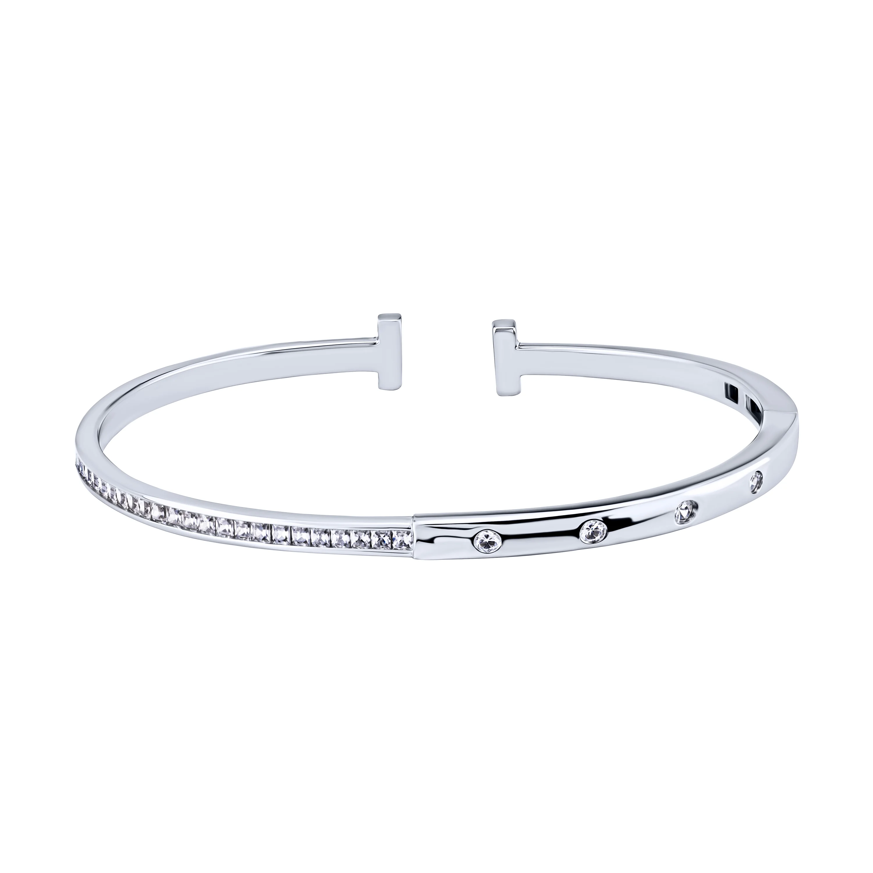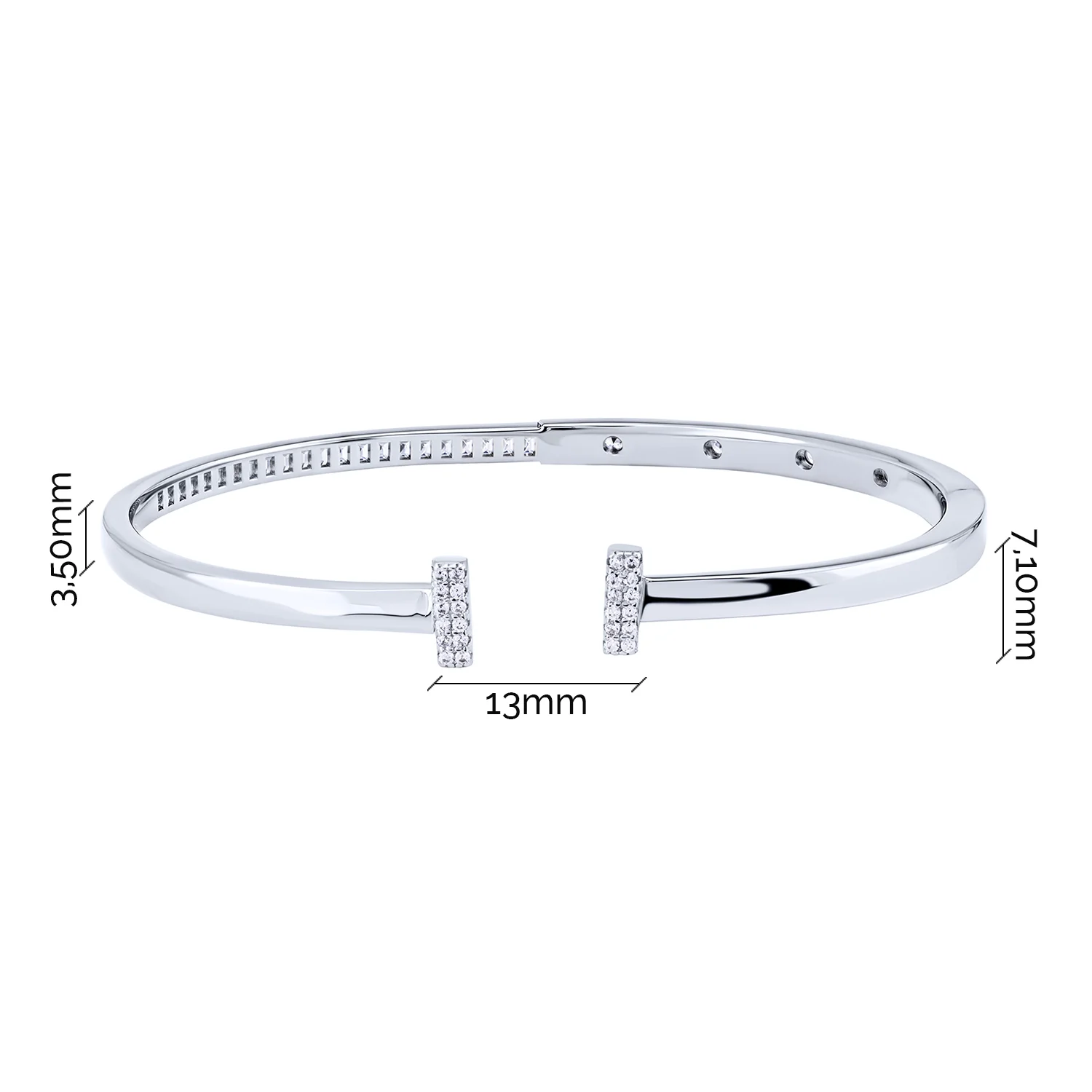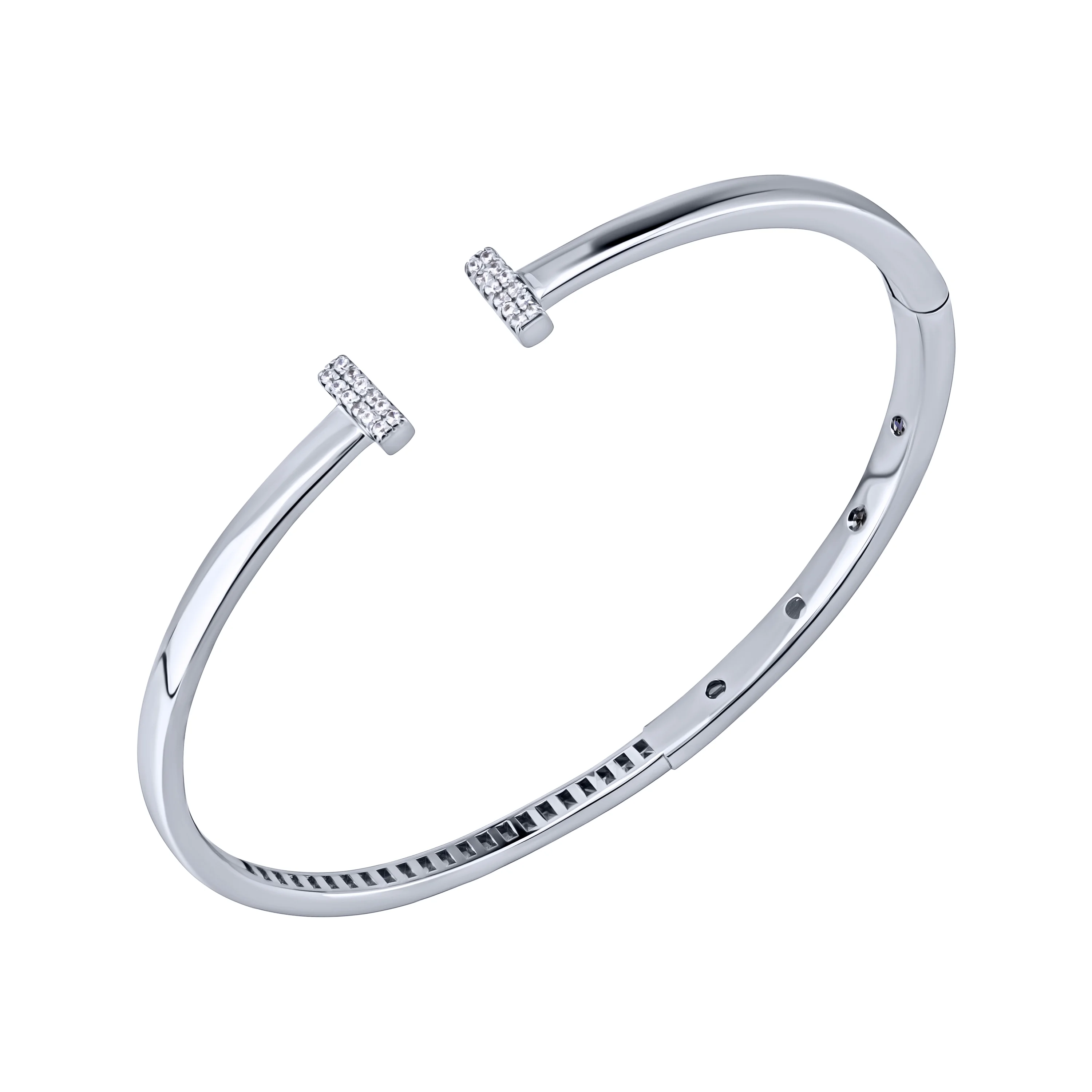 Незамкнутый жесткий серебряный браслет с фианитами - 2089003