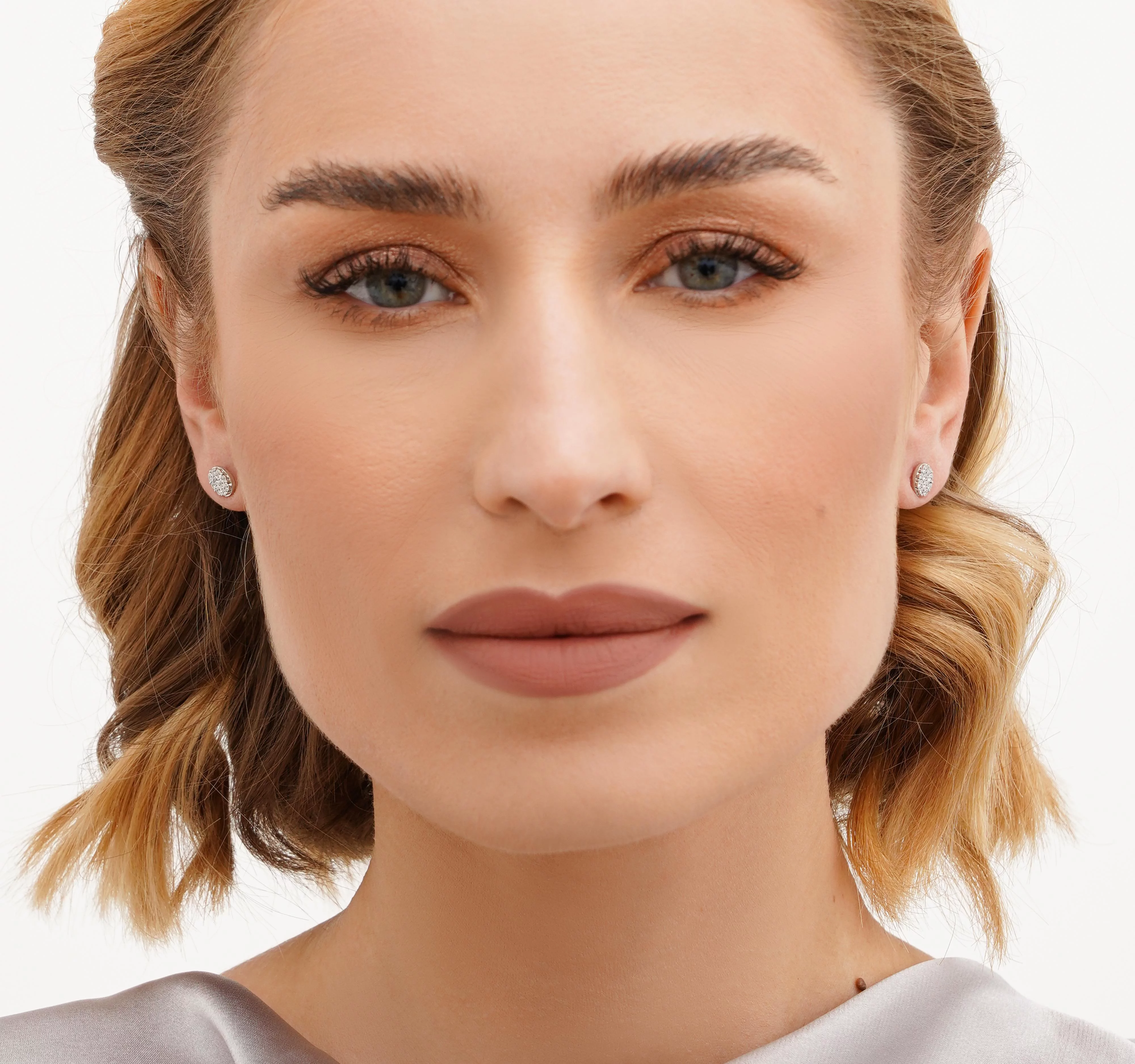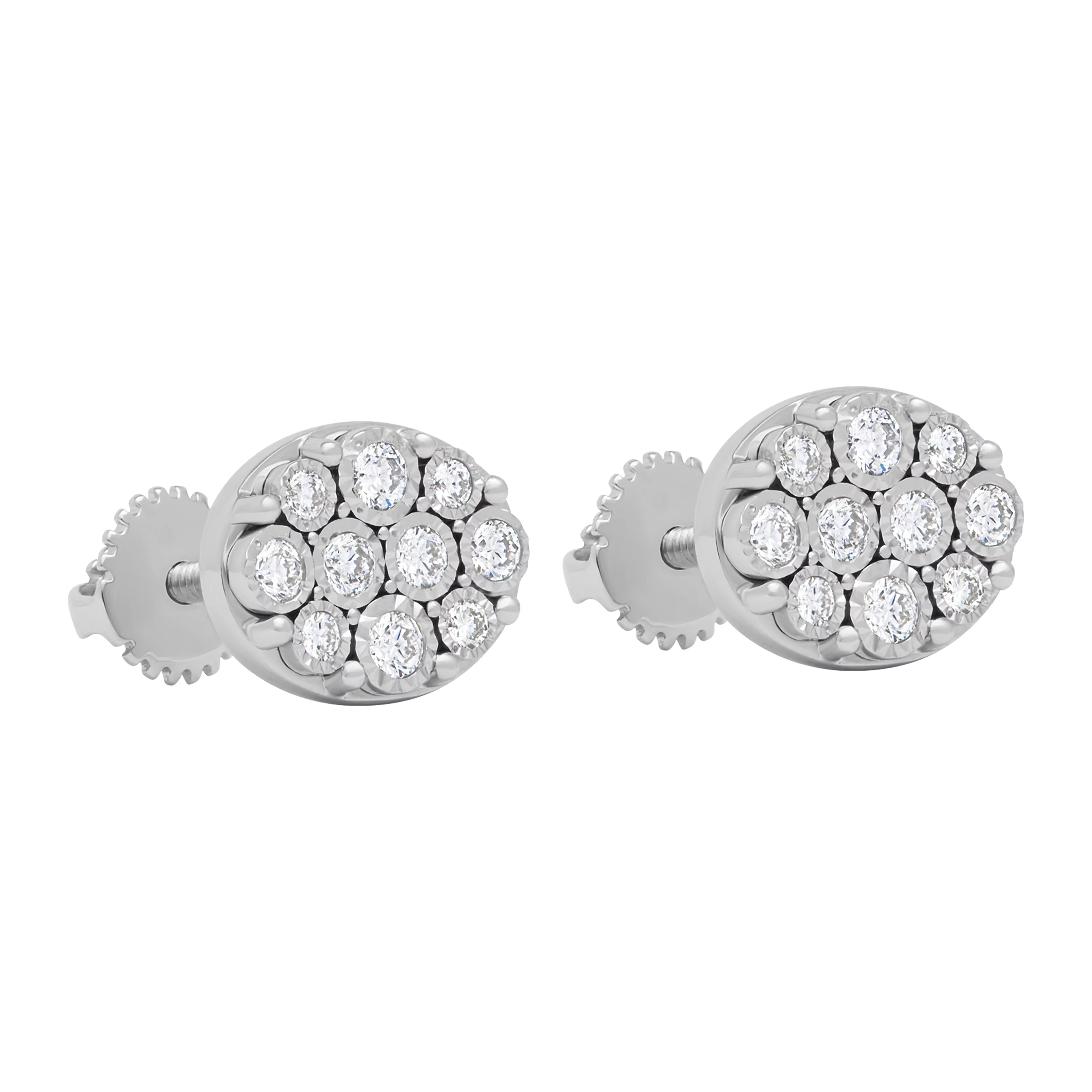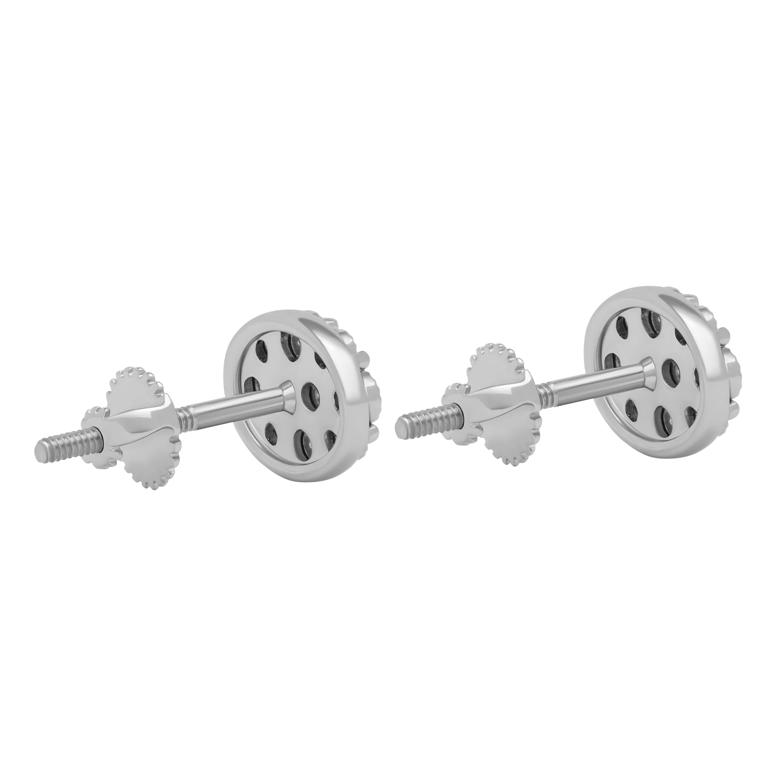 Сережки-пусеты "Круг" в белом золоте с дорожками из бриллиантов - 1876381