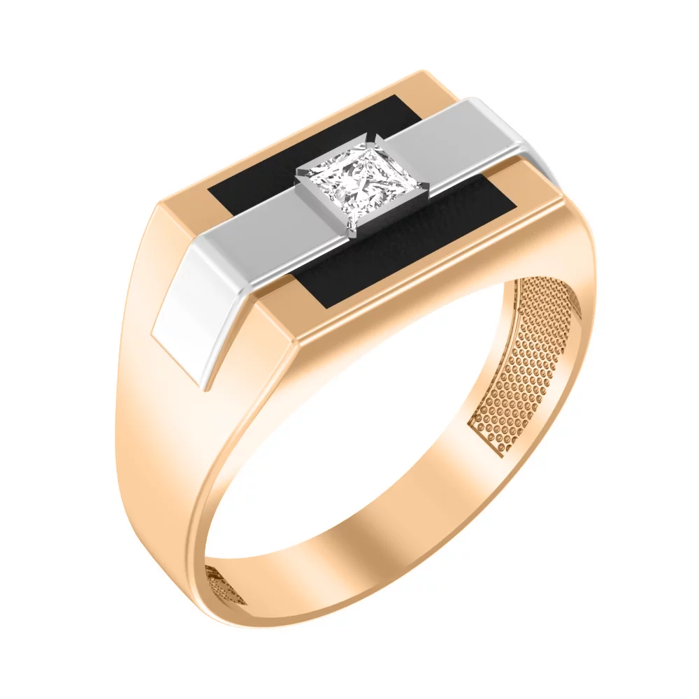 Печатка из красного золота с эмалью и фианитом - 1518165