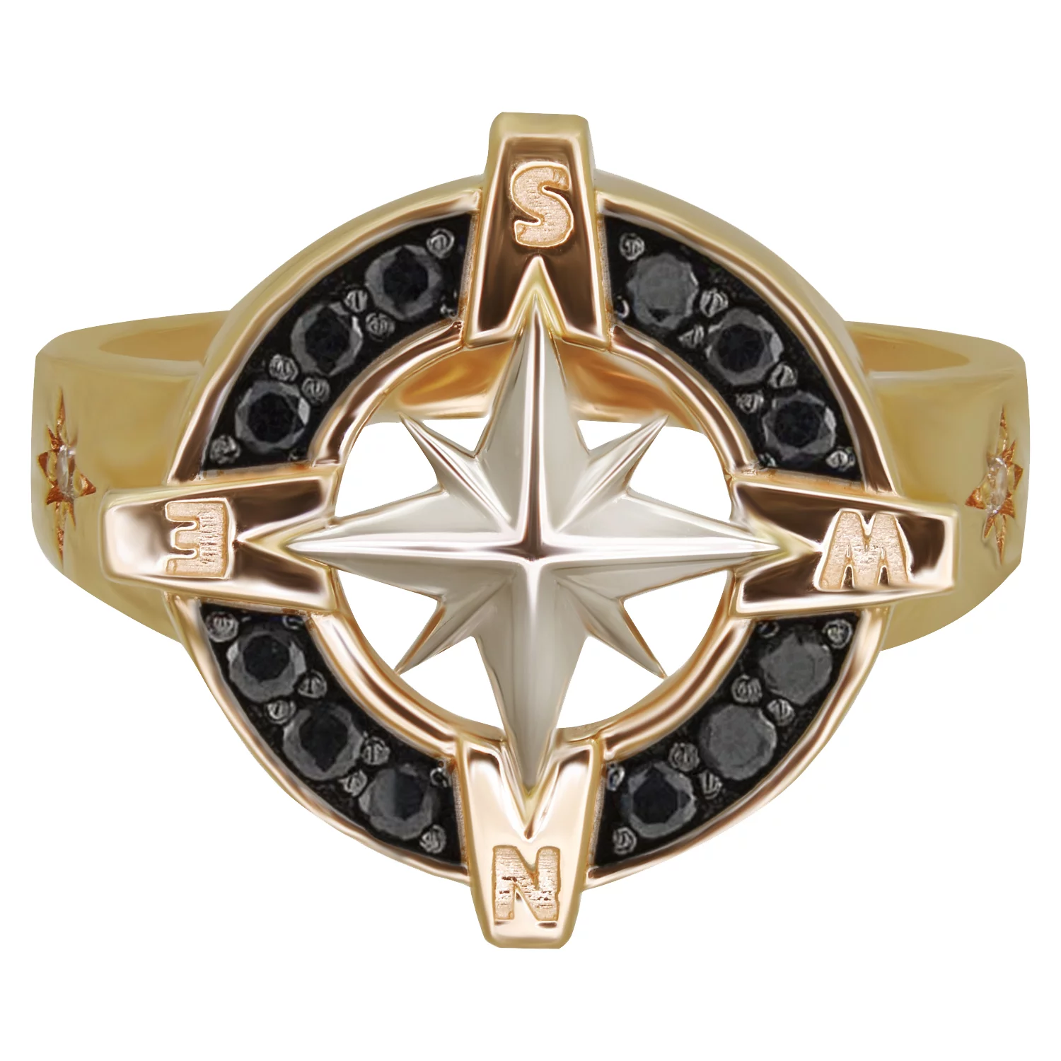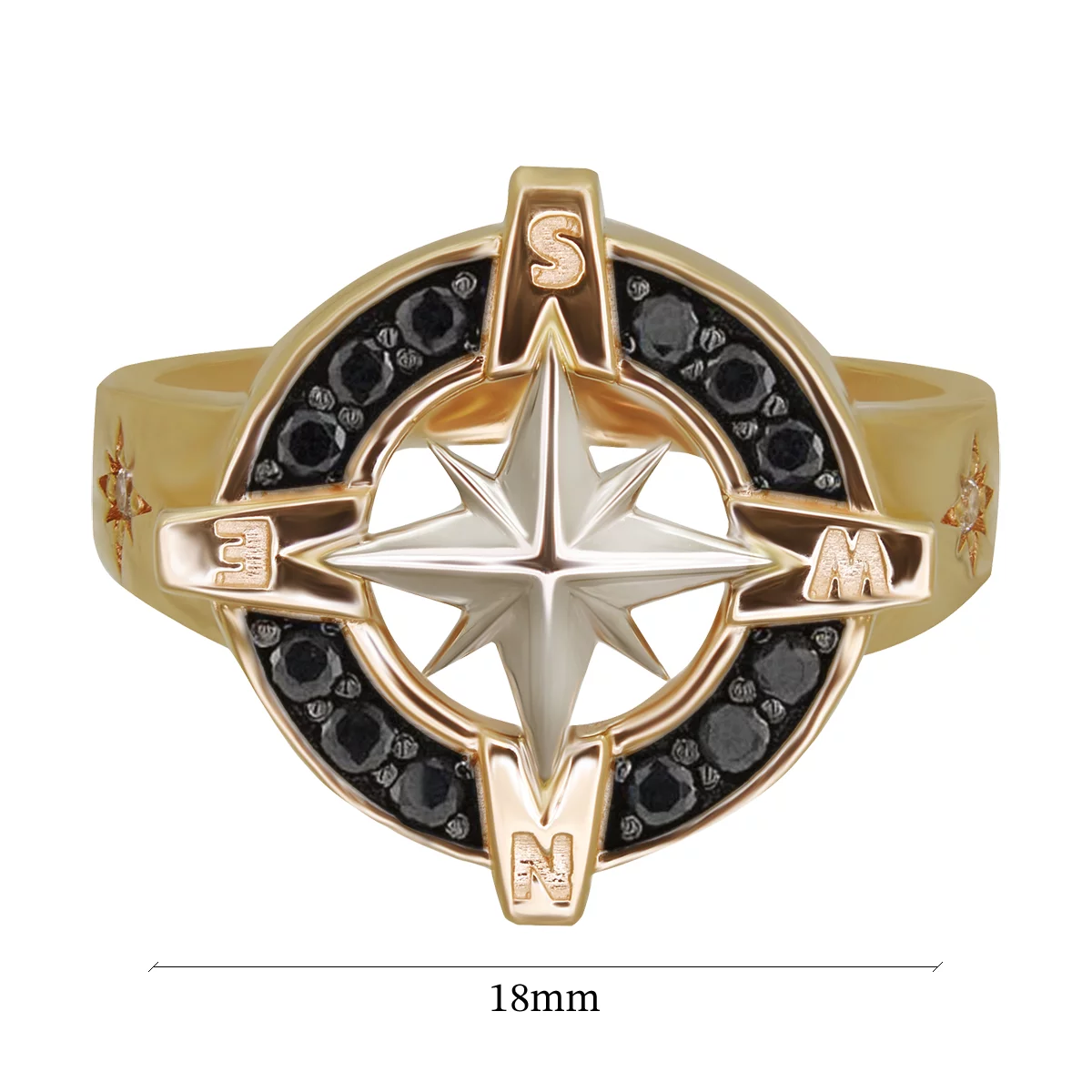 Перстень из комбинированного золота с цирконием Компас - 965852