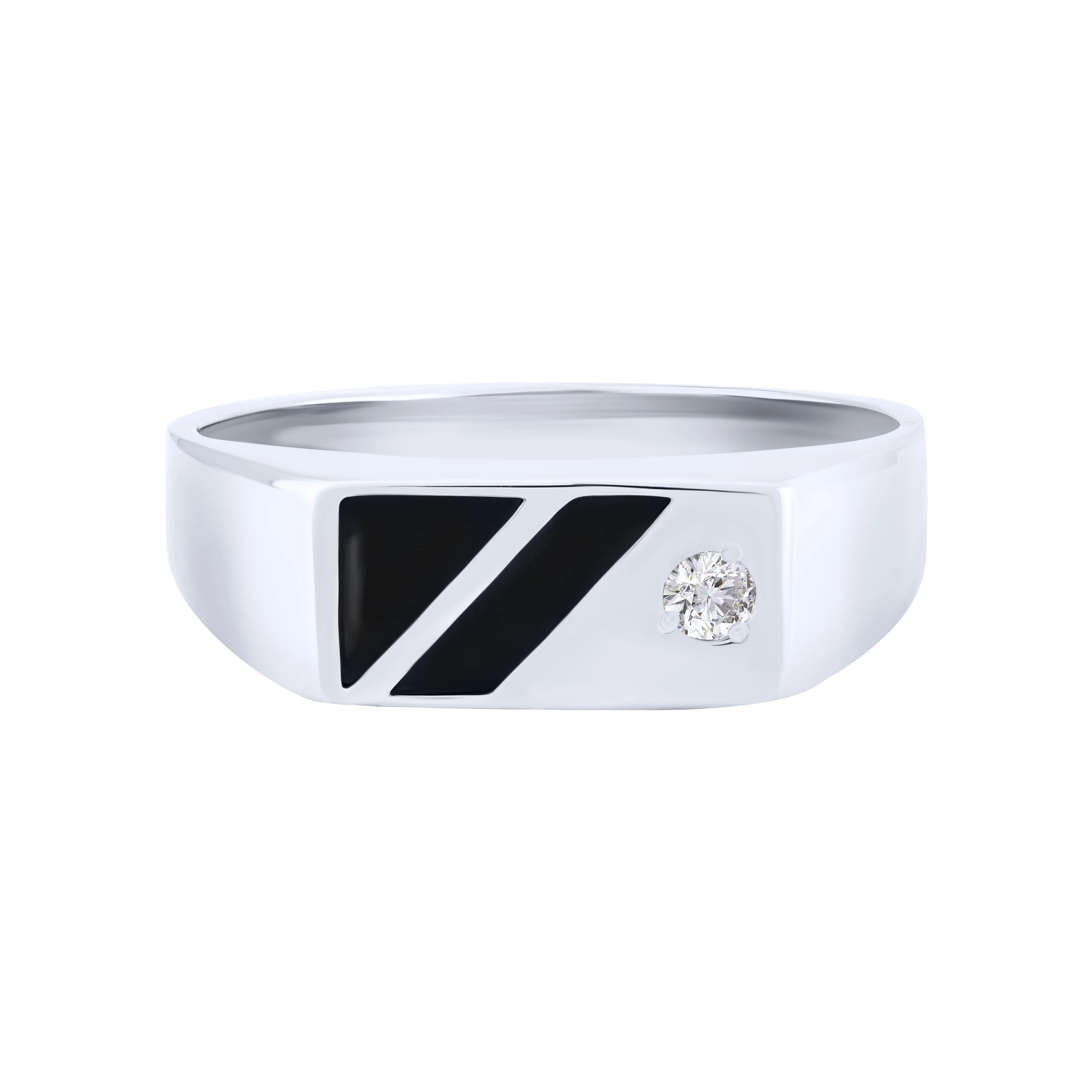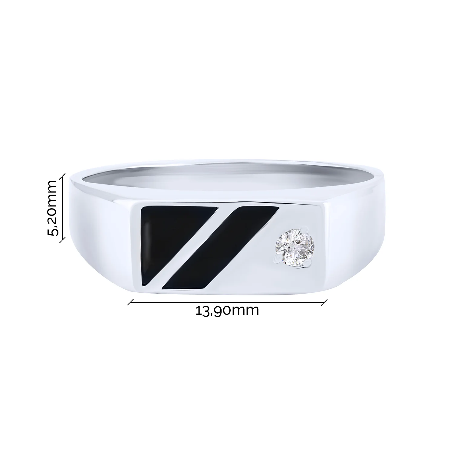 Перстень-печатка из серебра в классическом стиле с фианитом и с эмалью - 2122850
