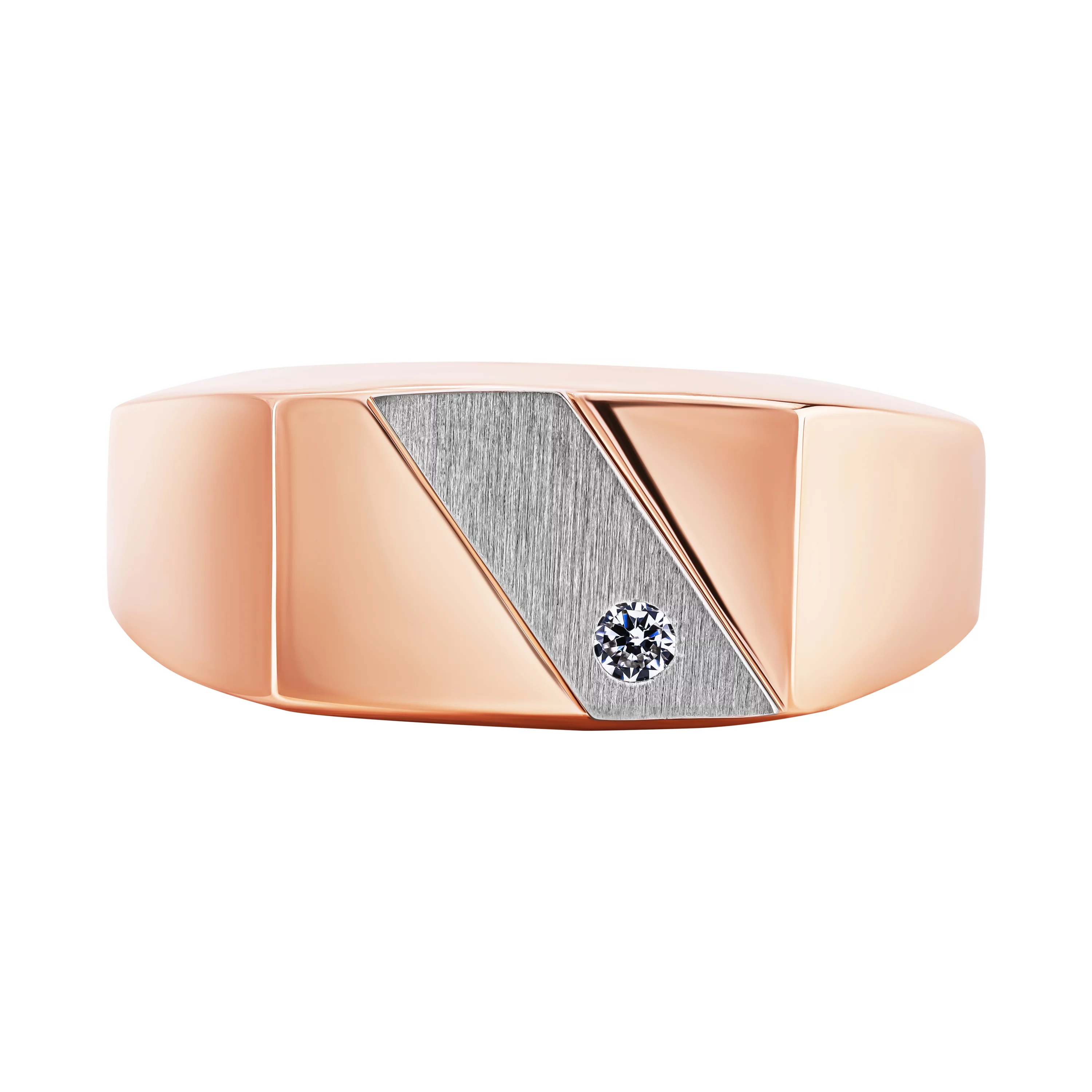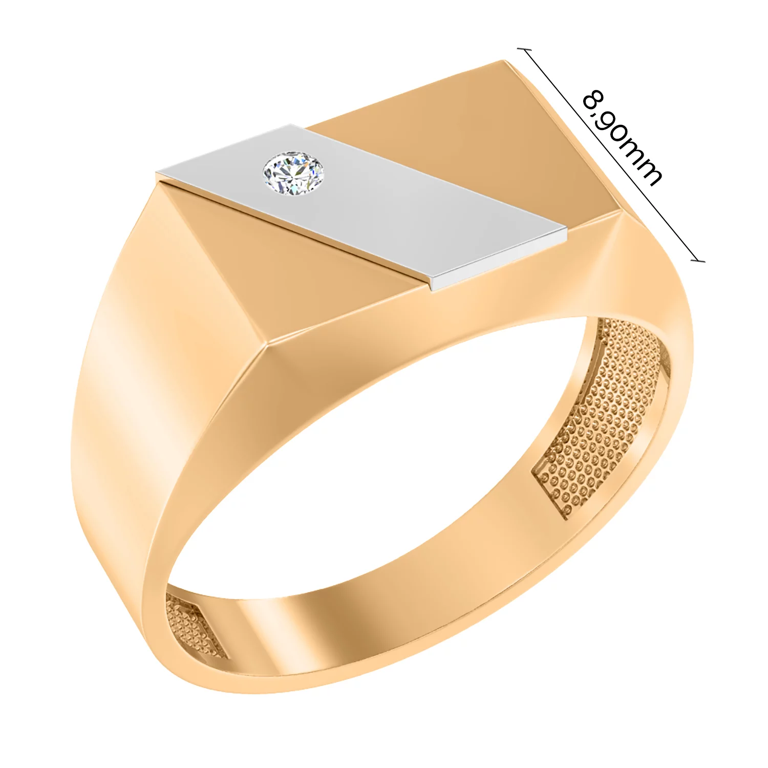 Перстень-печатка в комбинированном золоте с дорожкой из фианитов и эмалью - 1874594