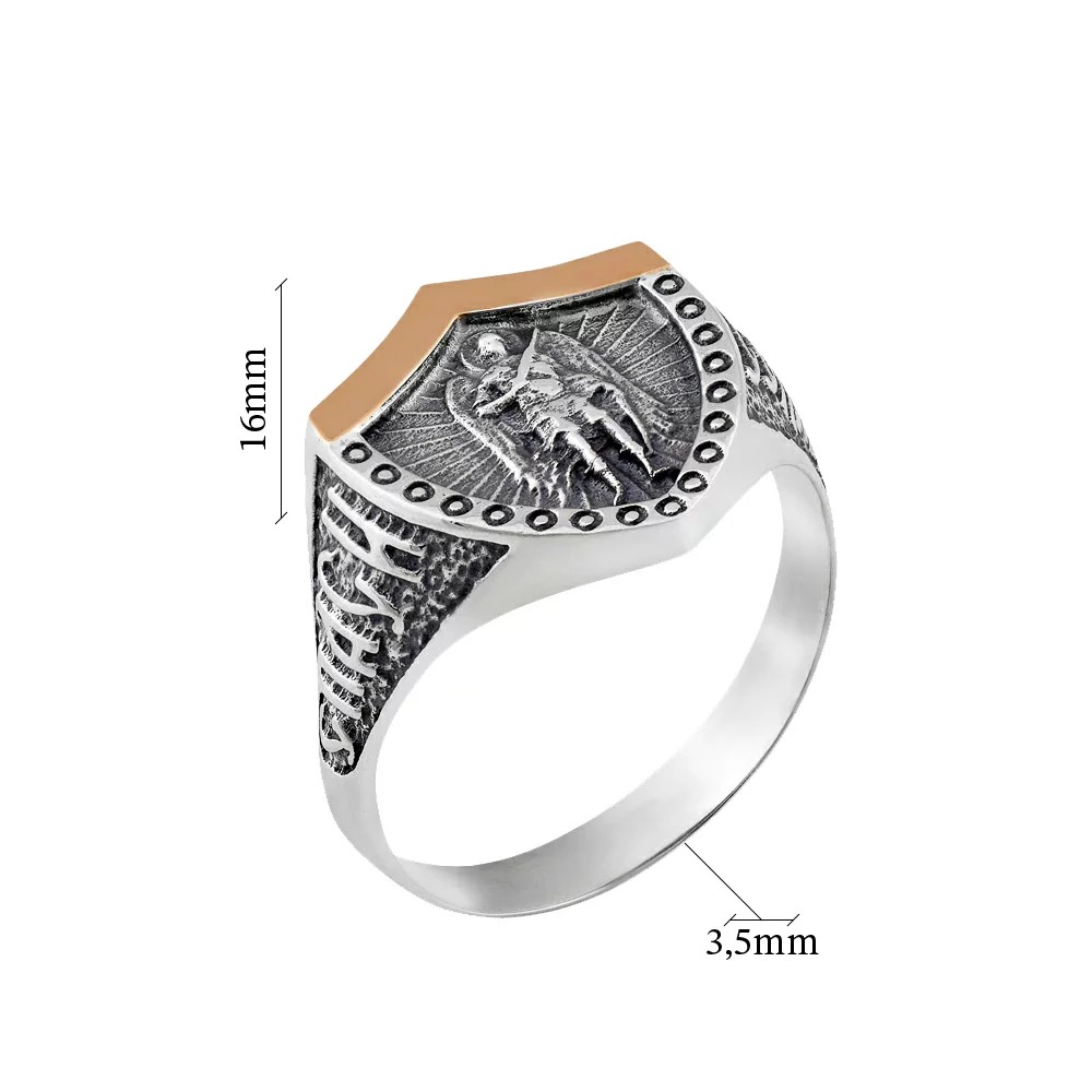 Серебряная печатка с ониксом и золотой накладкой "Тризуб-Герб Украины" - 1624363