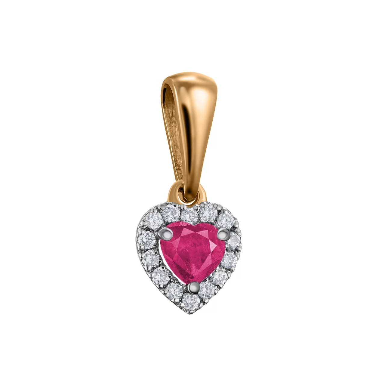 Подвеска "В сердце с Украиной" с бриллиантом и эмалью из красного золота - 1499952