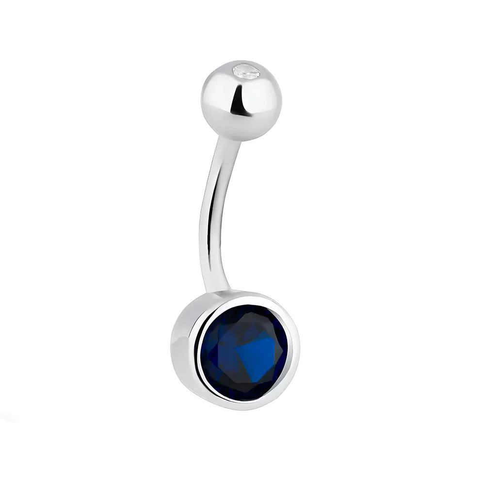 Пирсинг из серебра в пупок с фианитами - 1517255