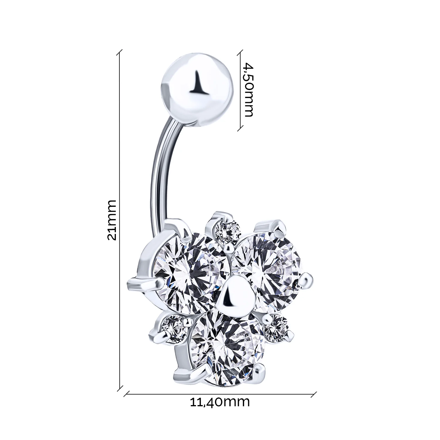 Пирсинг в пупок с фианитами из серебра "Цветочек" - 1428534