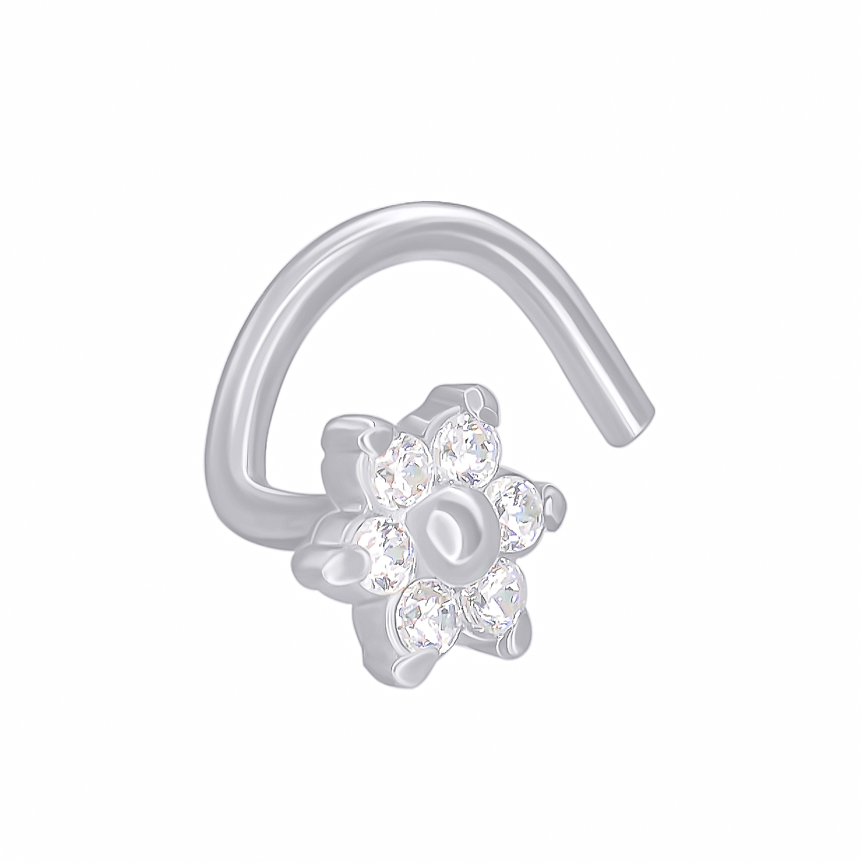 Пирсинг в нос серебряный с цирконом Цветок - 963281