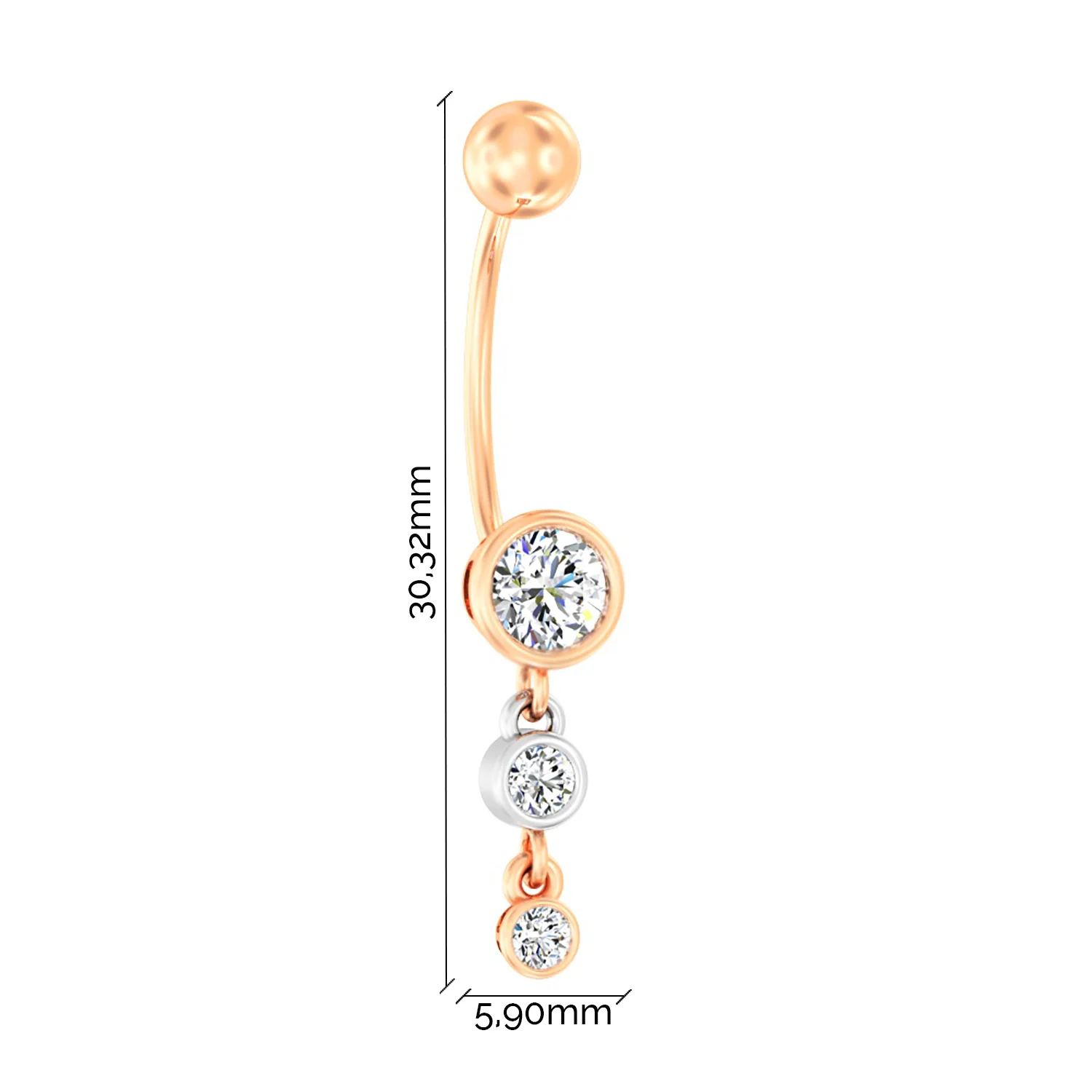 Пирсинг в пупок с подвесом из красного золота с фианитами "Корона" - 964419