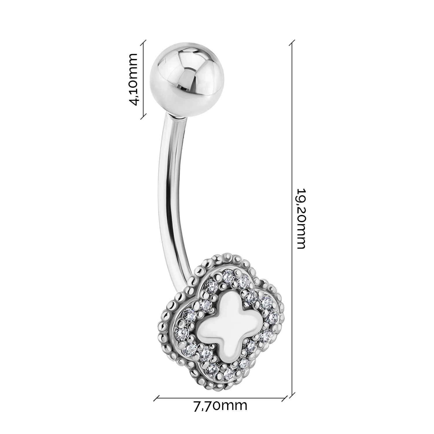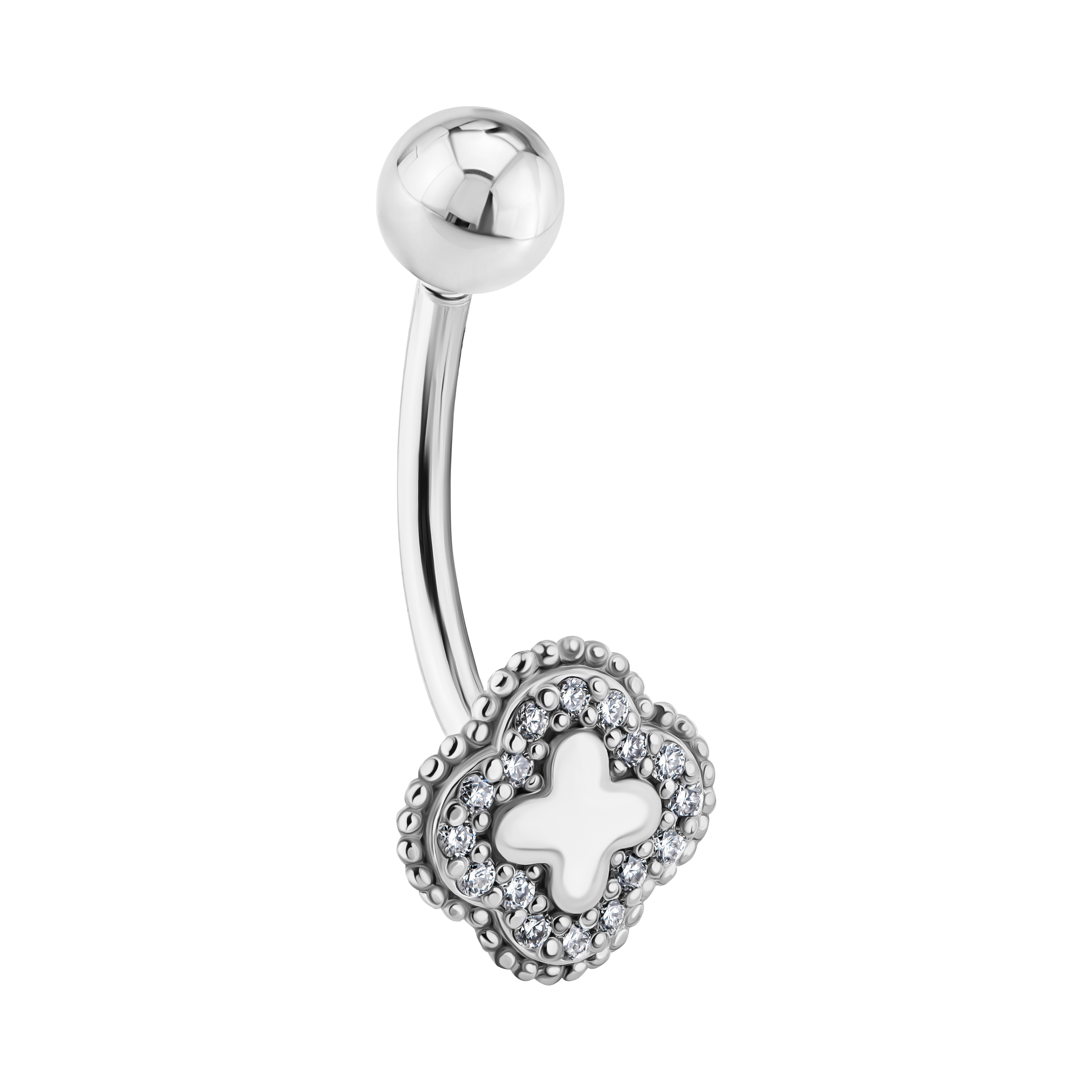 Пирсинг в пупок "Клевер" в белом золоте с бриллиантами - 2180078