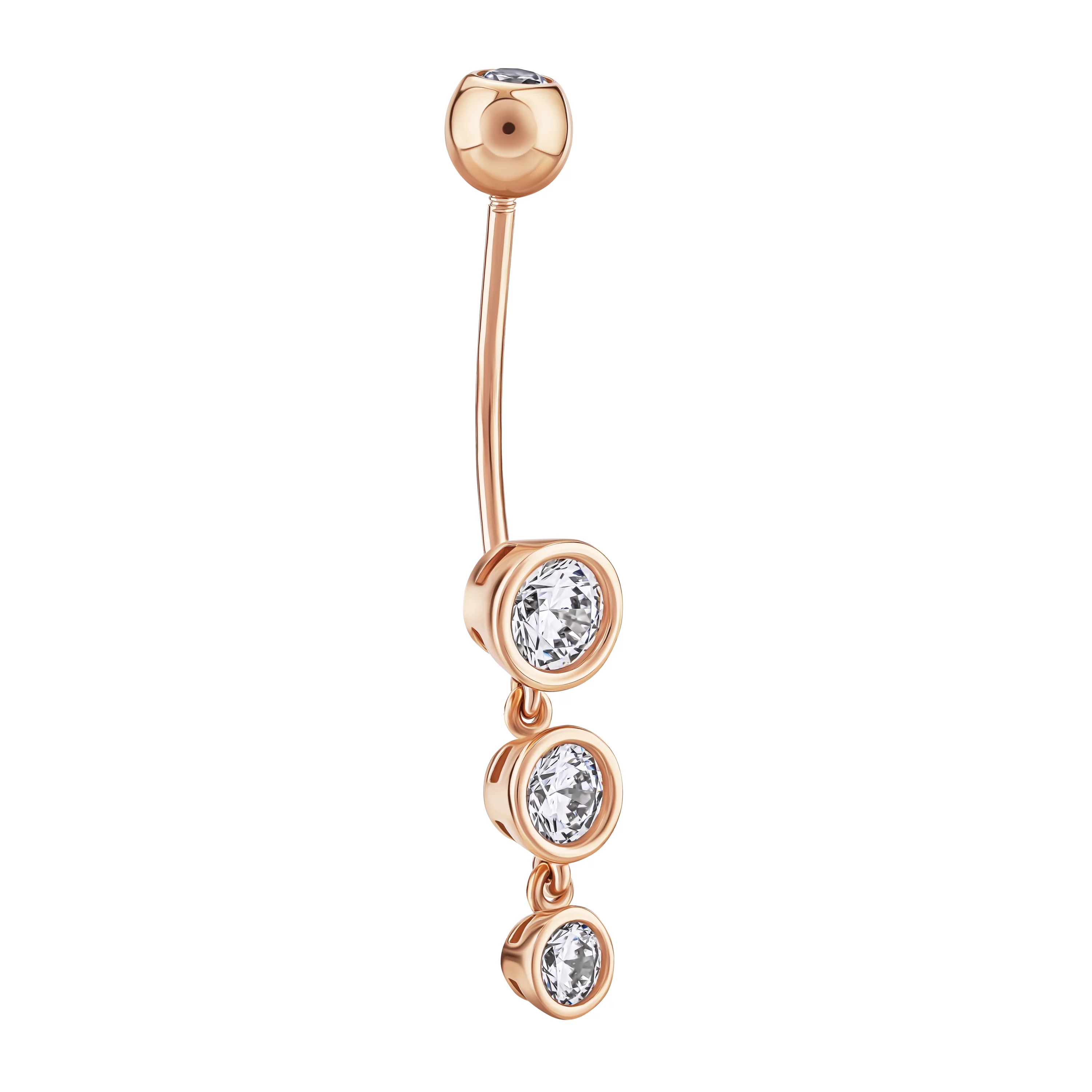 Серьги в красном золоте с фианитом и подвесками спиральной формы - 1589621