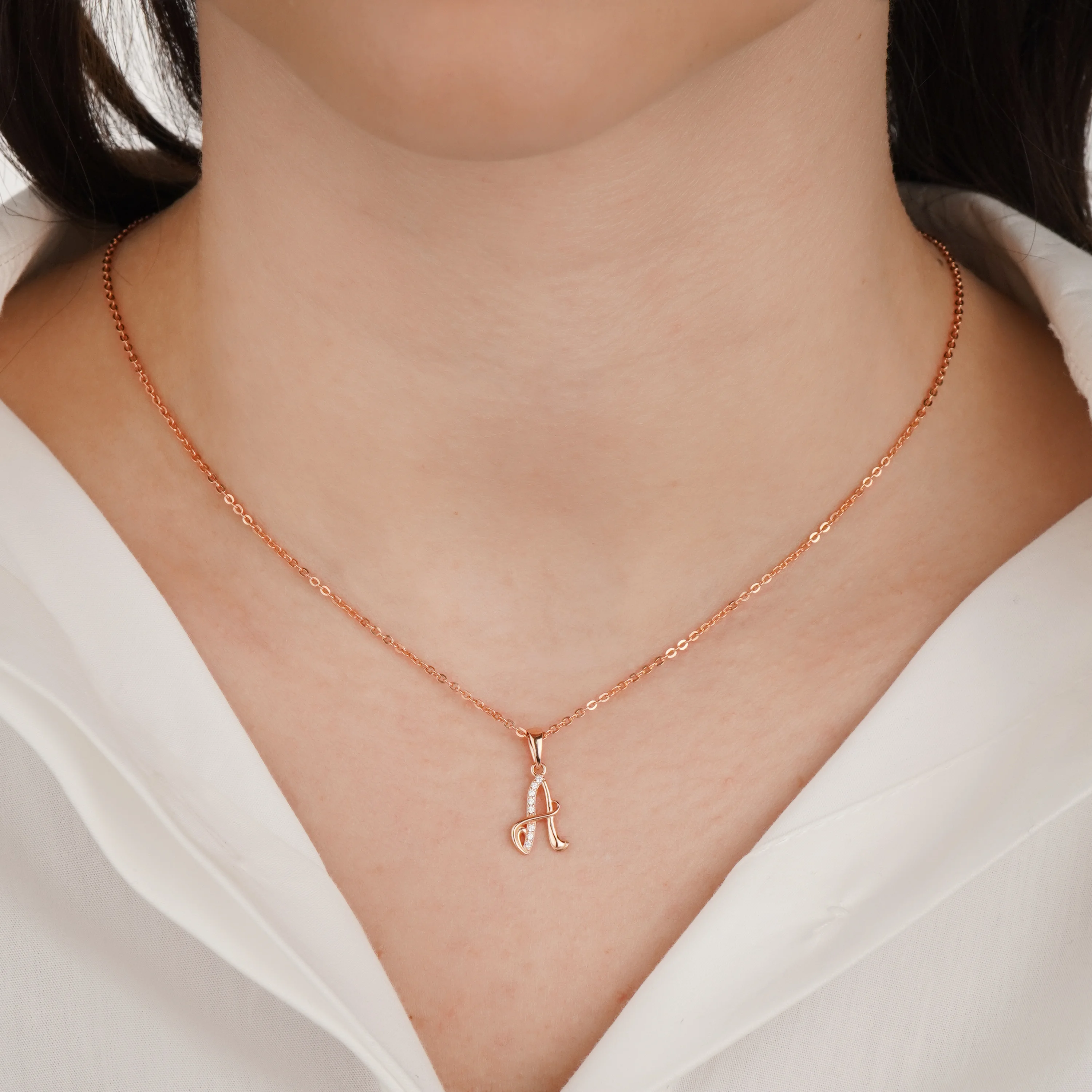 Элегантный подвес "Буква А" из красного золота с эмалью и фианитом - 1944769