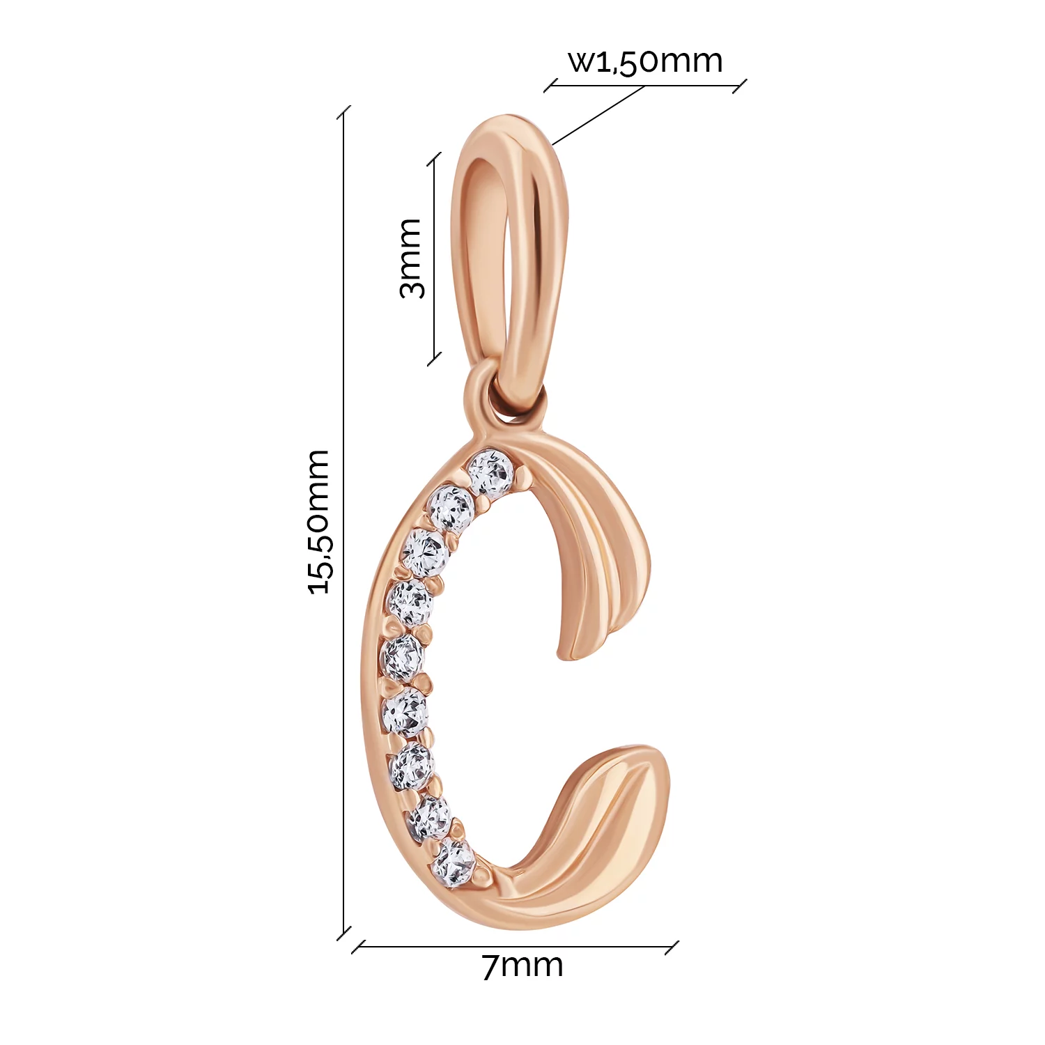 Подвес "Буква С" в красном золоте с фианитами - 1944767