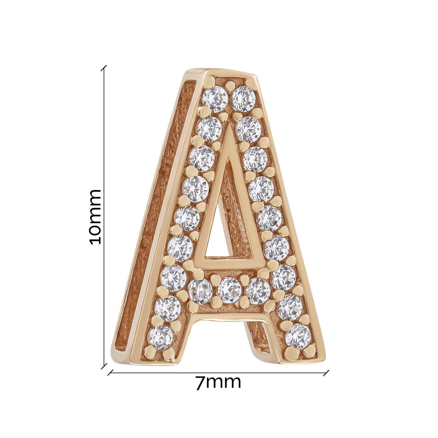Подвес из красного золота с фианитом буква "А" - 1467748