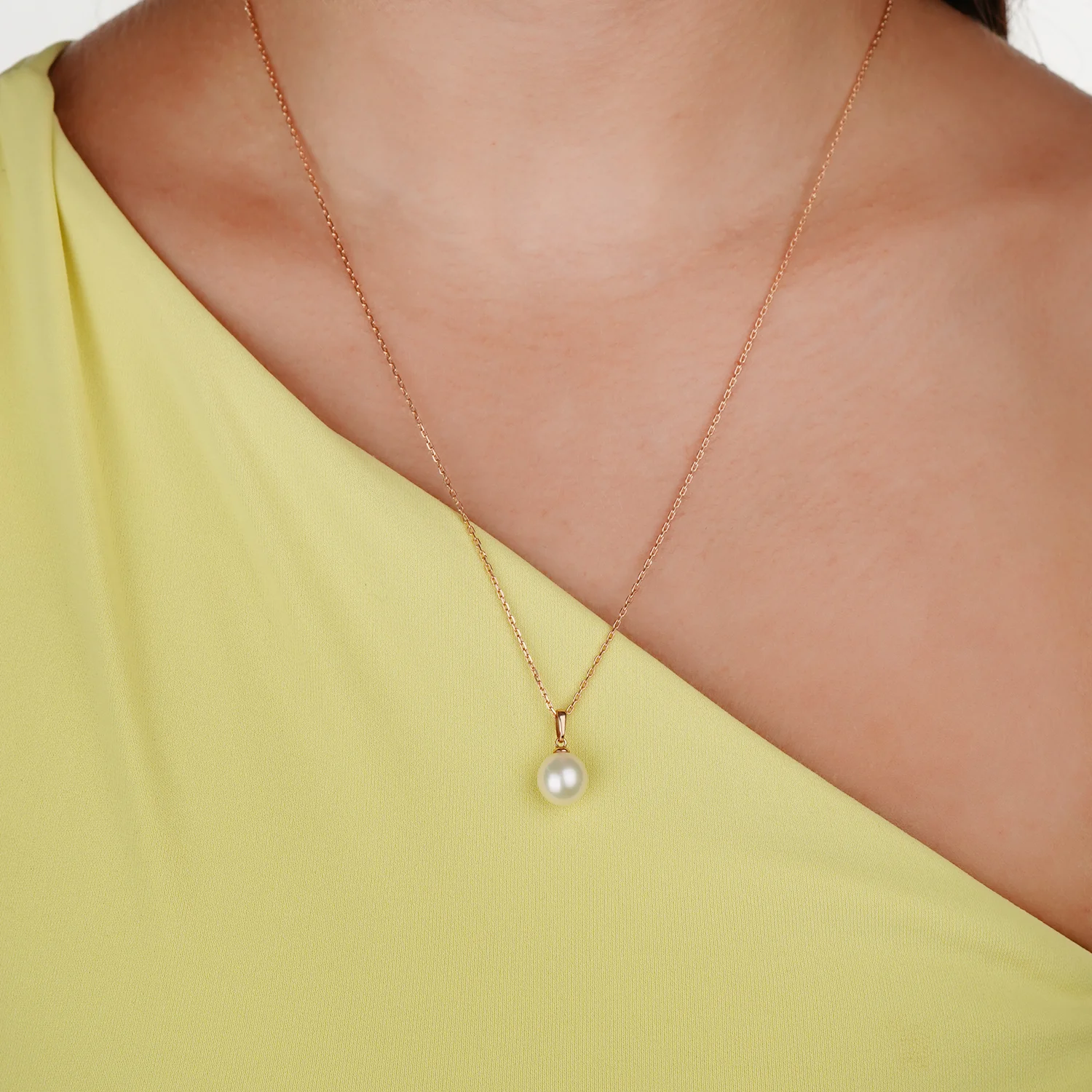 Элегантный подвес в минималистичном стиле в красном золоте с жемчугом - 1939382