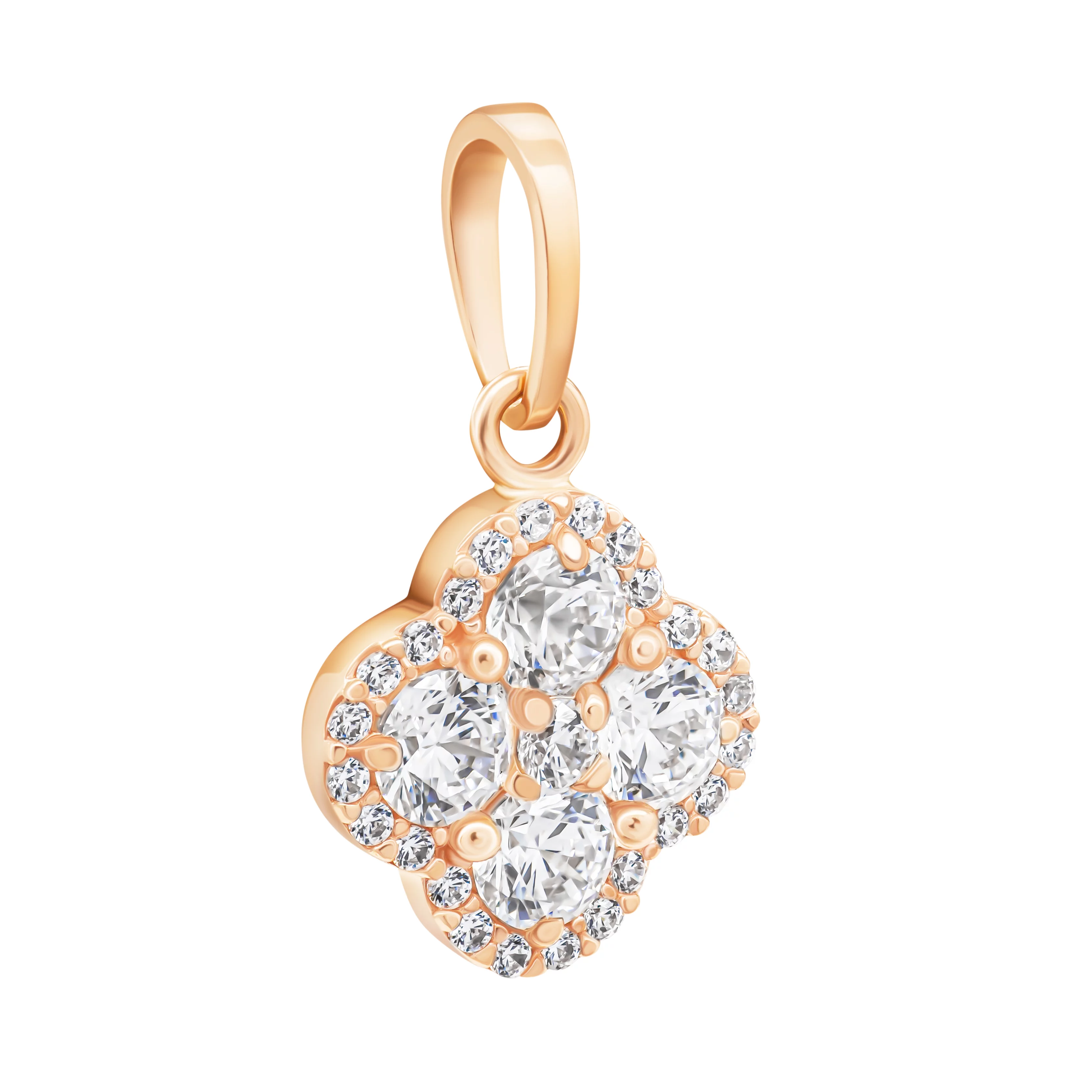Подвес "Клевер" из красного золота с фианитами - 1827299