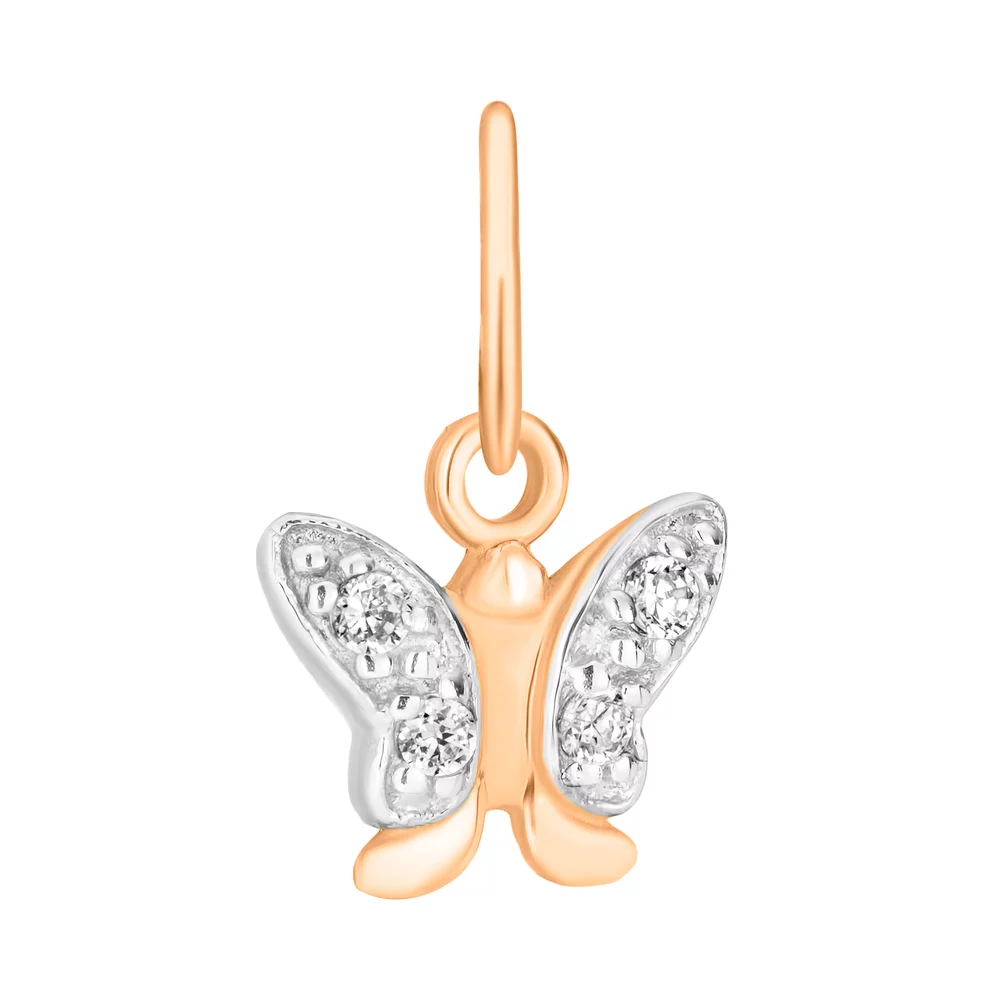Подвеска "Бабочка" из красного золота с фианитами - 1534769