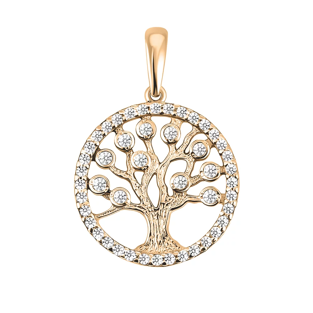 Подвеска "Дерево Жизни" из красного золота с фианитами - 1545451