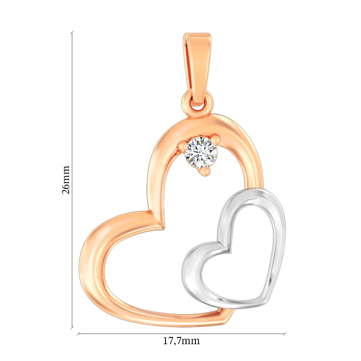 Подвес из комбинированного золота с фианитом "Сердечки" - 972734