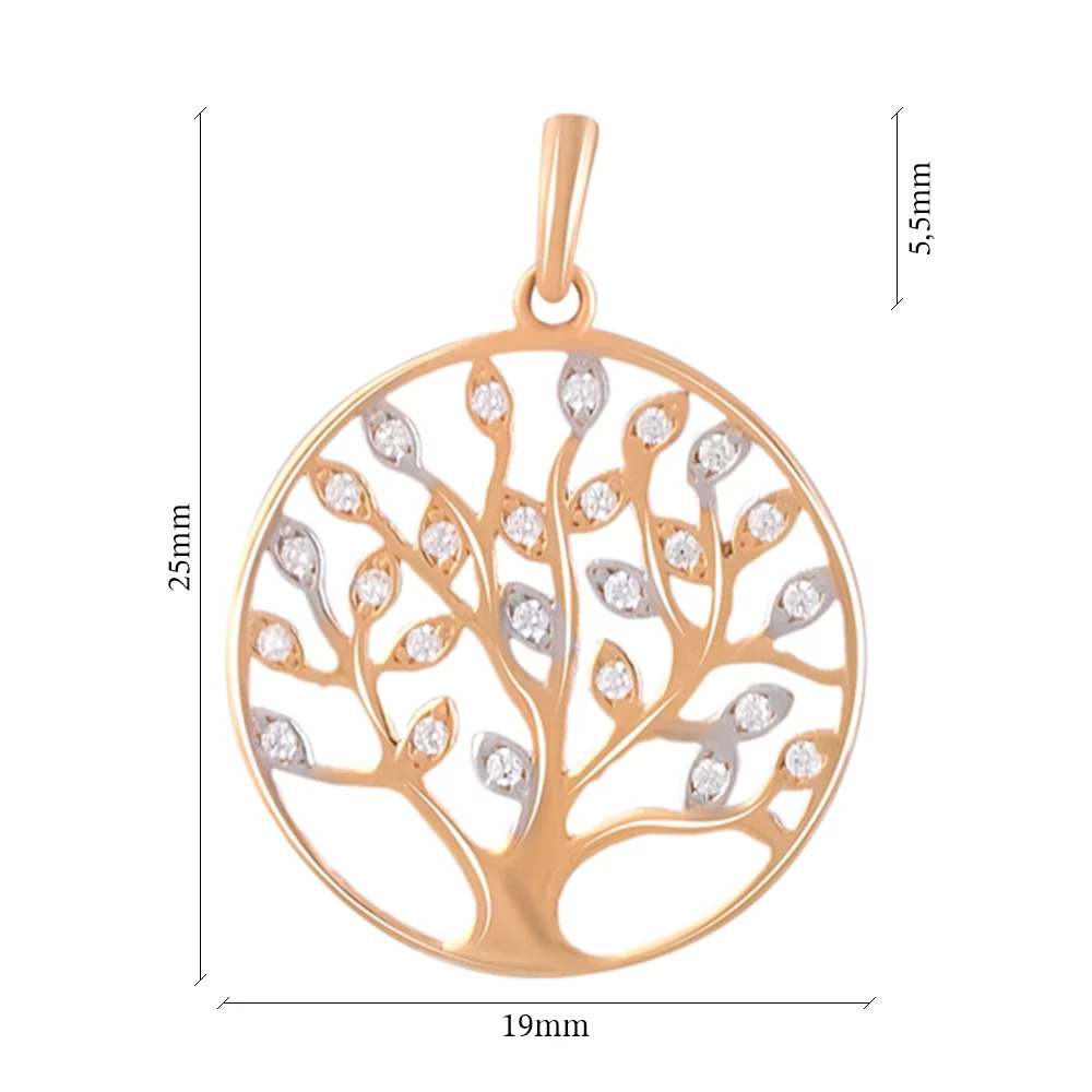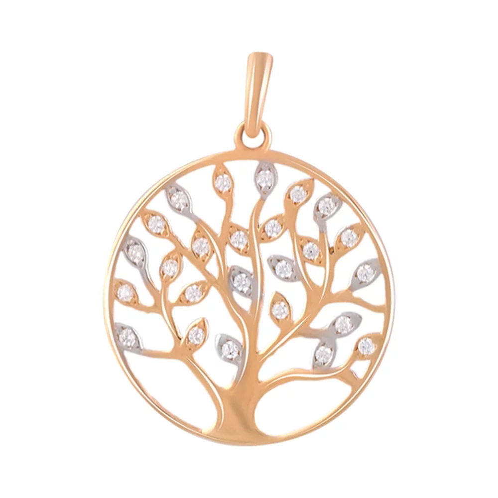 Подвес из красного золота "Дерево" с фианитами - 1476773
