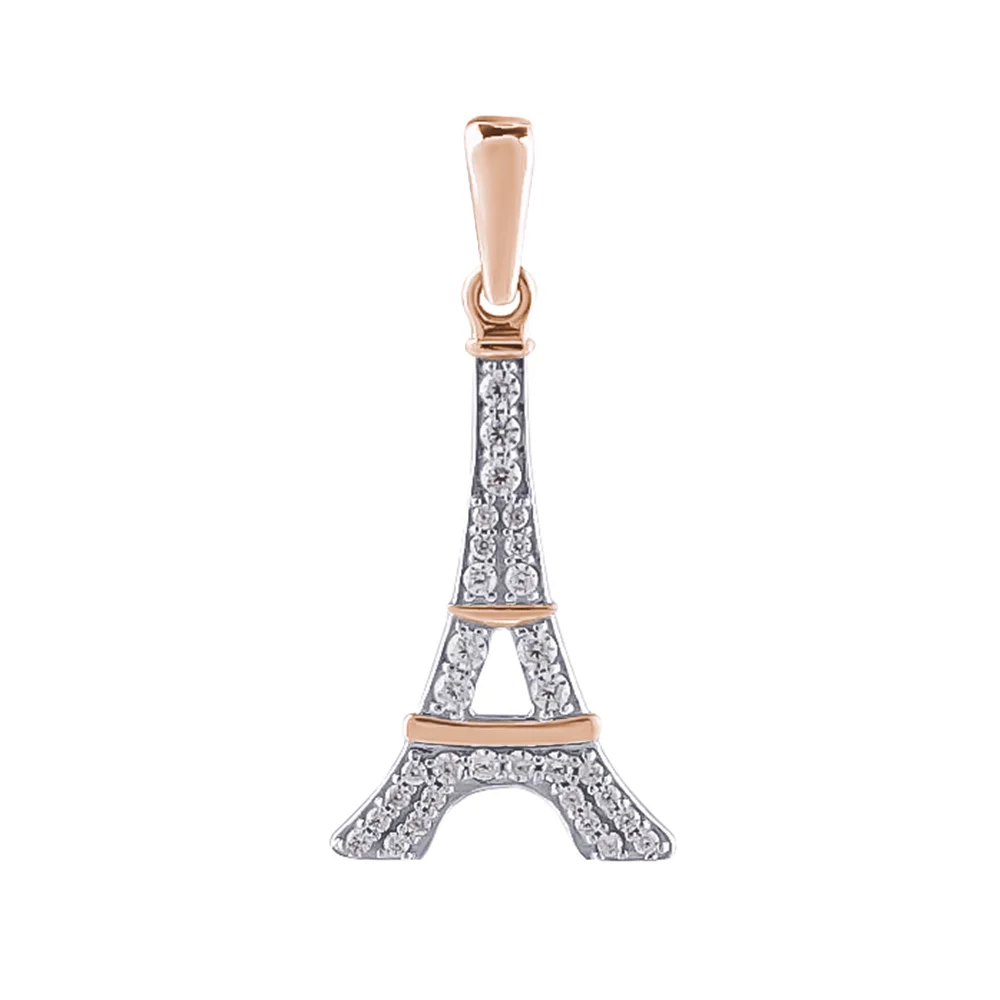 Подвеска из красного золота "Эйфелева Башня" с фианитом - 1505655