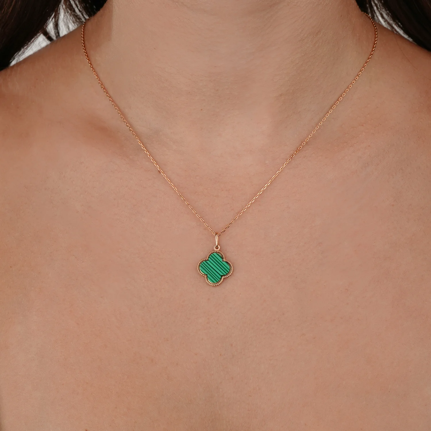 Подвес из красного золота "Клевер" с малахитом - 1529959