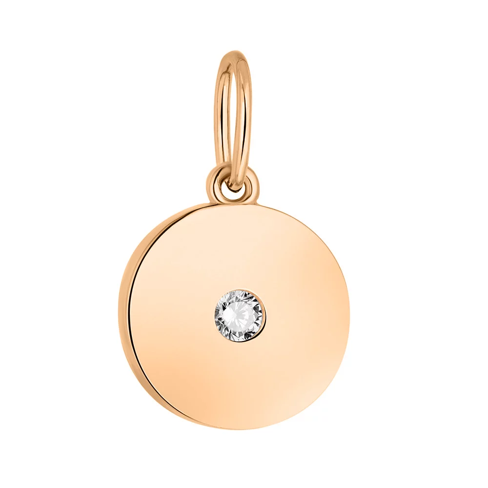 Элегантная подвеска "Буква А" из красного золота с эмалью и фианитом - 1944769