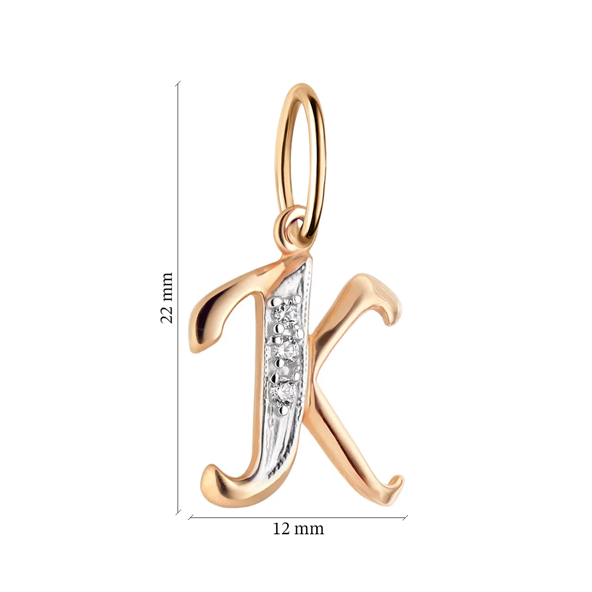 Элегантная подвеска "Буква А" из красного золота с эмалью и фианитом - 1944769
