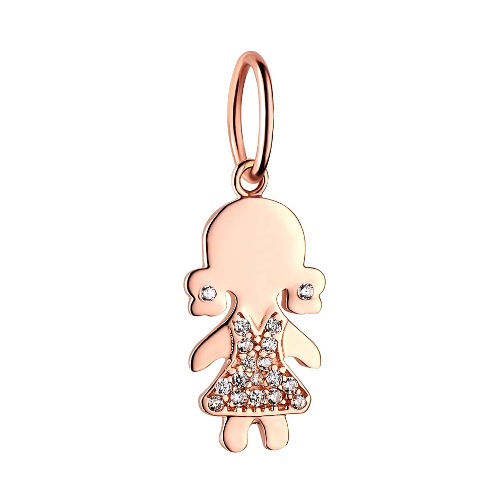 Подвеска из красного золота с фианитом "Девочка" - 968530