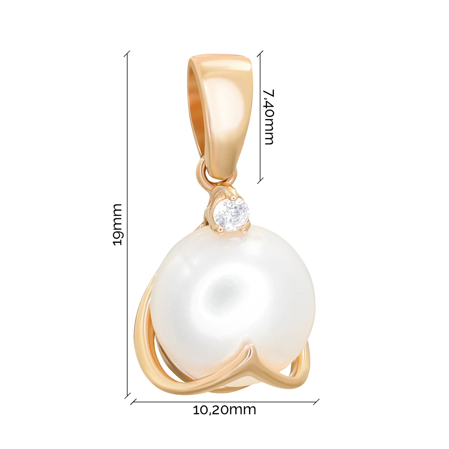 Подвес из красного золота с фианитом и жемчужиной - 890809
