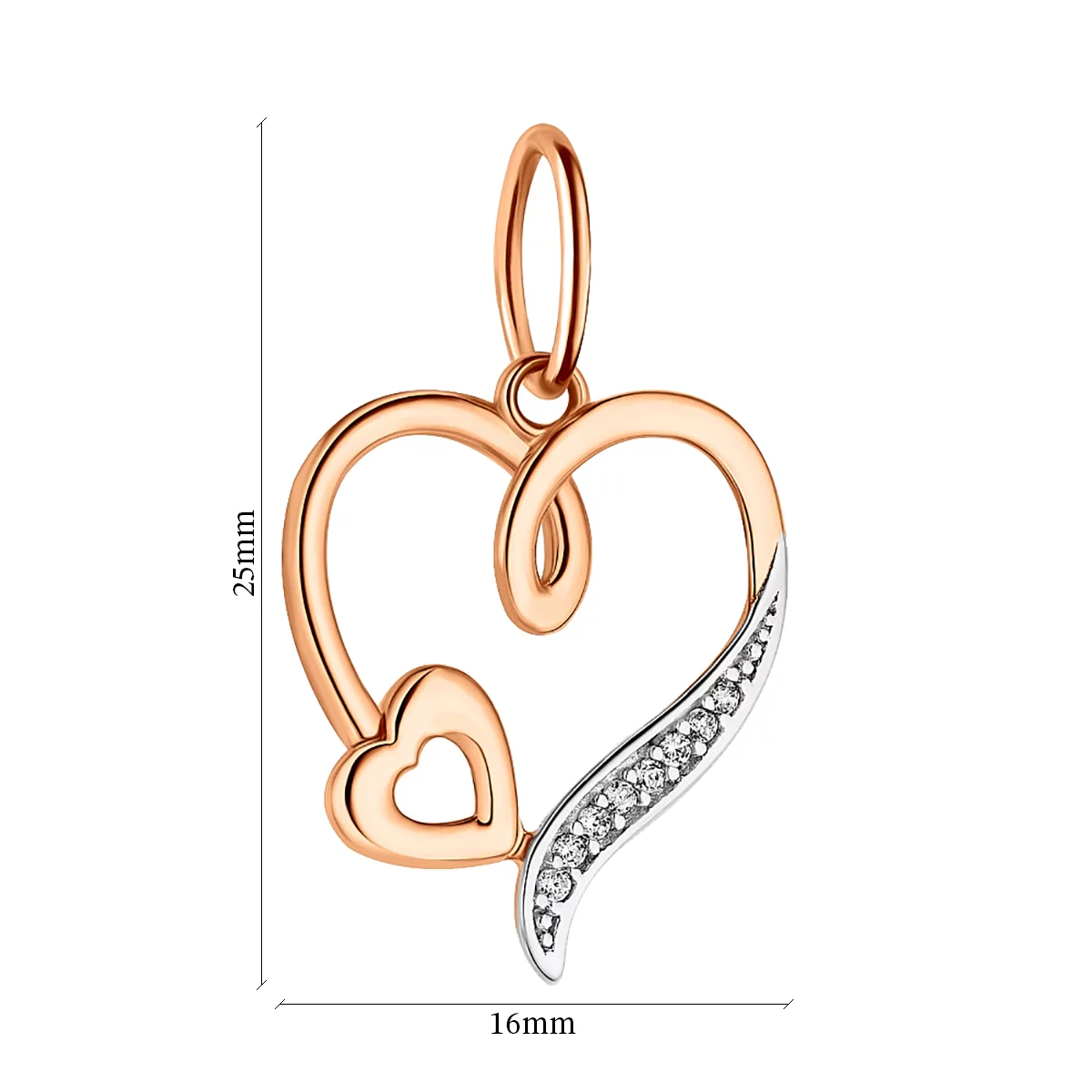 Подвес в комбинированном золоте с фианитами "Сердечки" - 964391