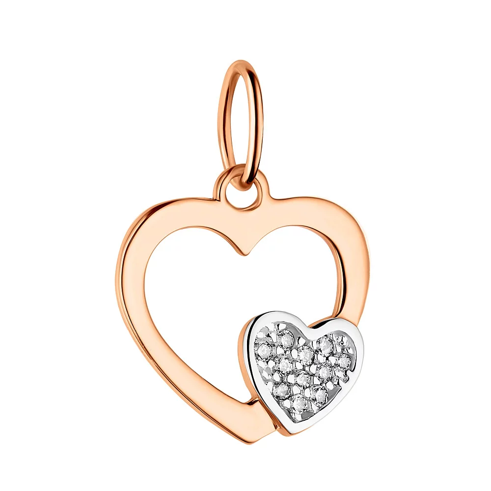 Подвеска из красного золота с фианитом "Сердечки" - 965893